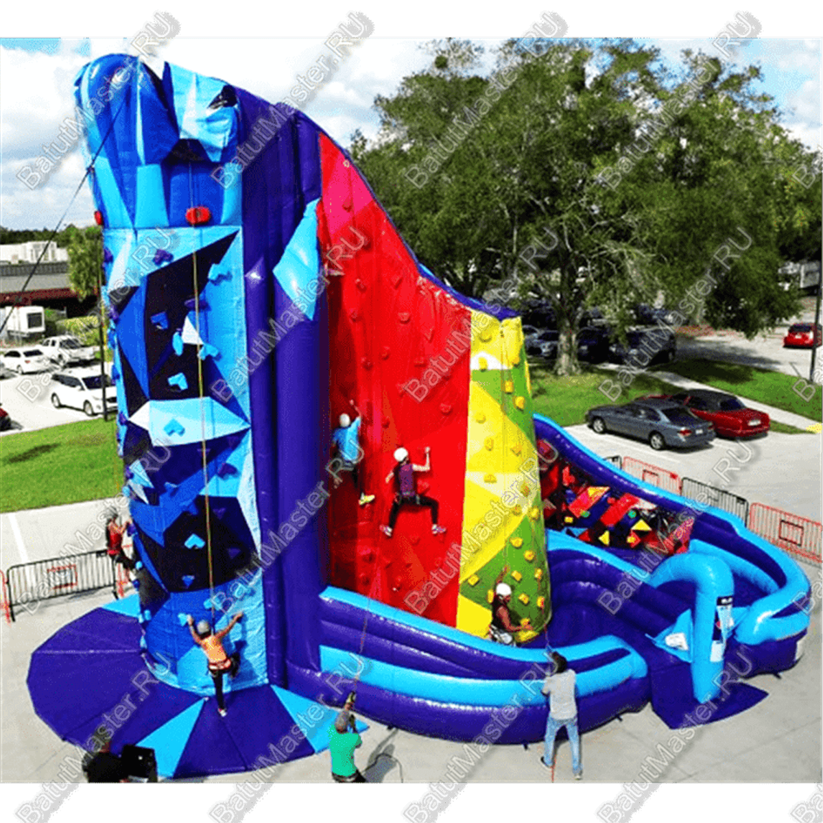 Данный коммерческий скалодром-батут поражает своим оригинальным дизайном. Отличное сочетание ярких и приятных цветов и необычная архитектура делает этот аттракцион лакомым кусочком.