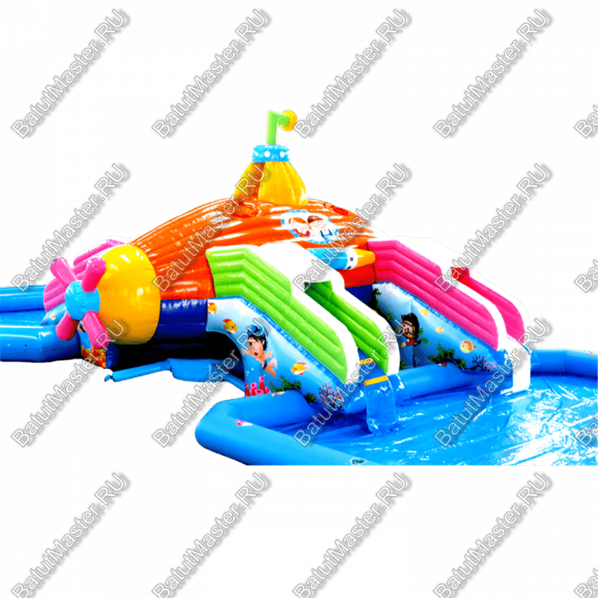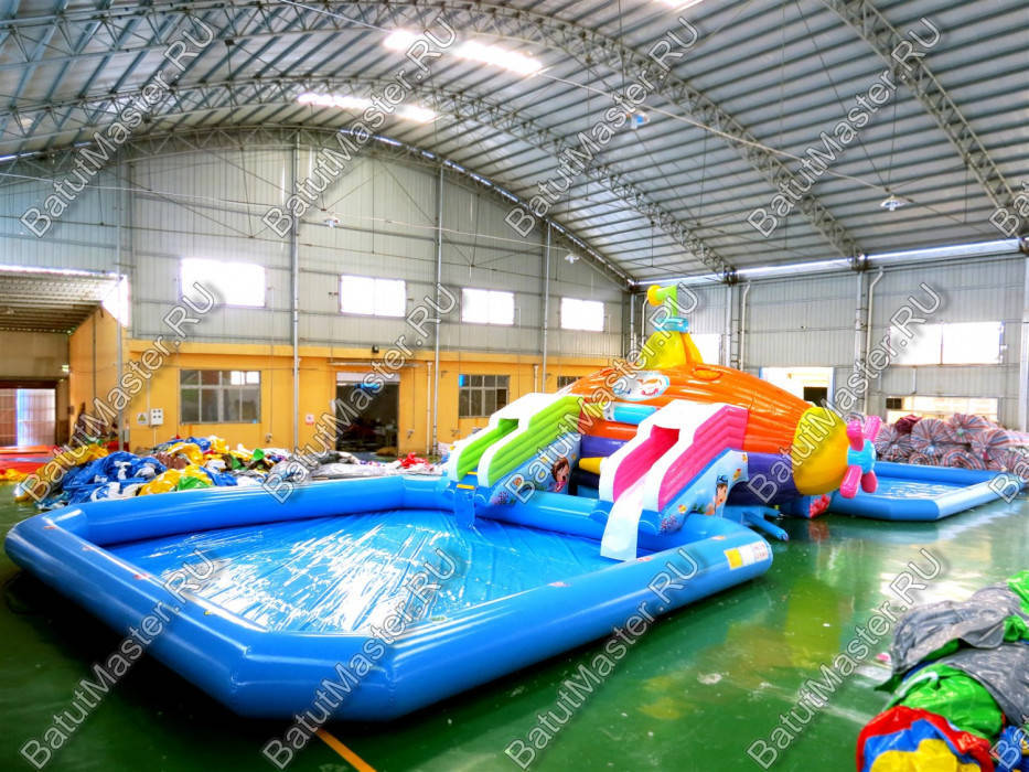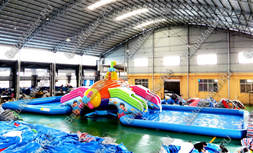 Надувной наземный аквапарк "Субмарина" – это комплексный водный аттракцион, разработанный для активного отдыха и веселых развлечений. Его яркий дизайн в стиле подводной тематики создает атмосферу морского путешествия, а тщательно продуманная конструкция позволяет безопасно и комфортно использовать все элементы.