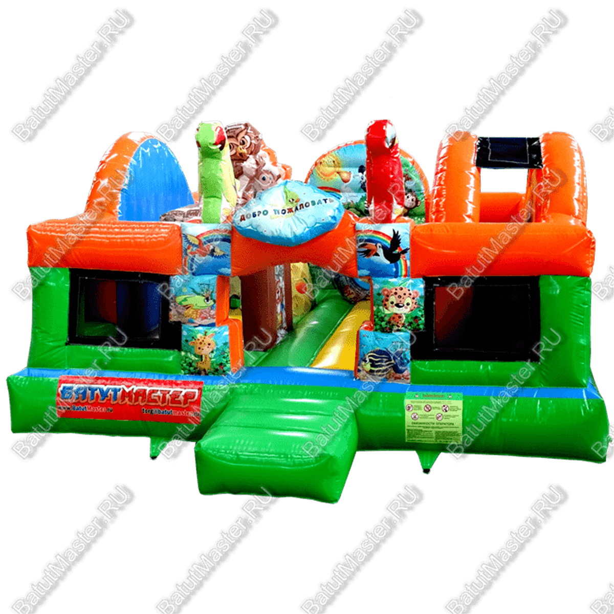 Батутный аттракцион предназначается для самых маленьких ребятишек. Уже на входе они смогут увидеть приветливых зверей, которые ждут в гости маленьких посетителей. Пройдя в арку, которая сделана из надувных кубиков и на которой написано «Добро пожаловать», дети смогут вдоволь напрыгаться и набегаться. Обилие ярких красок только скрасит их времяпровождения.