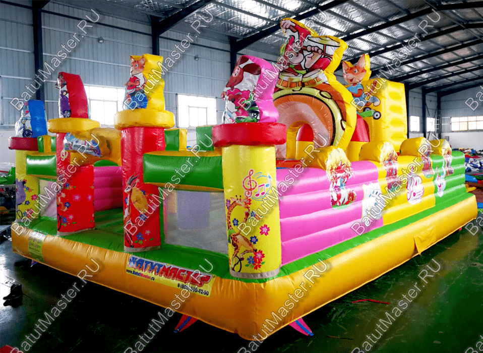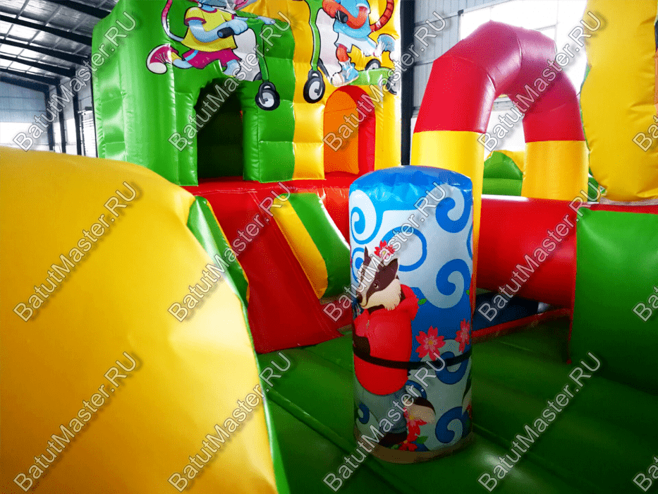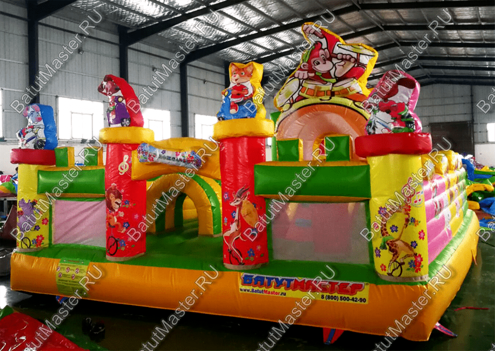 Яркие и сочные цвета – отличный способ привлечь внимание детей. Ребёнок младшего возраста познаёт мир именно с помощью цветов и ассоциативного мышления. Чем ярче и чище цвет, тем больше он привлекает ребёнка. А если к яркой расцветке добавить ещё и животных, то аттракцион станет вдвойне интереснее для маленьких посетителей. Приобретение подобного батута станет отличным вариантом для бизнеса, ведь яркие цвета и животных любят абсолютно все дети.