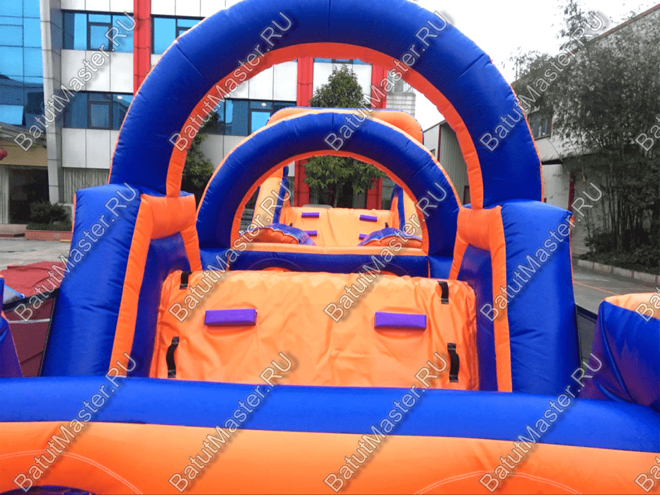 Полоса препятствий отличается не только великолепным внешним видом, но и еще функциональностью. Она прекрасно дополнит любую детскую площадку, а также займет достойное место на детских соревнованиях.¶Коммерческий батут полностью надувной, не имеет жестких элементов. Отвечает всем требованиям безопасности.