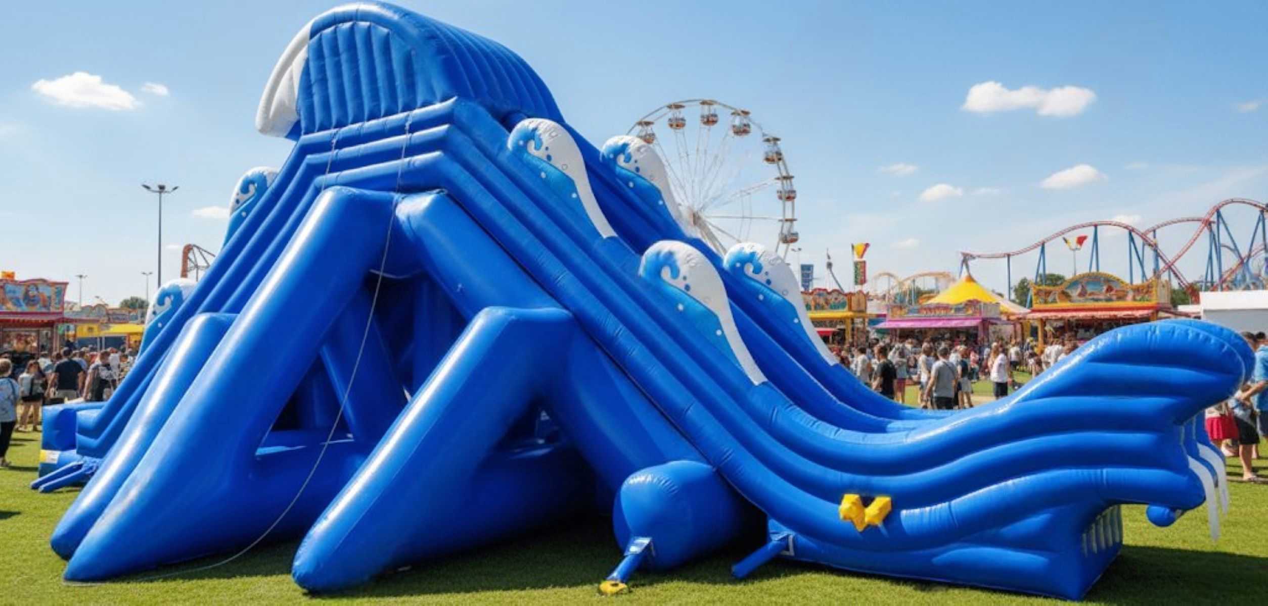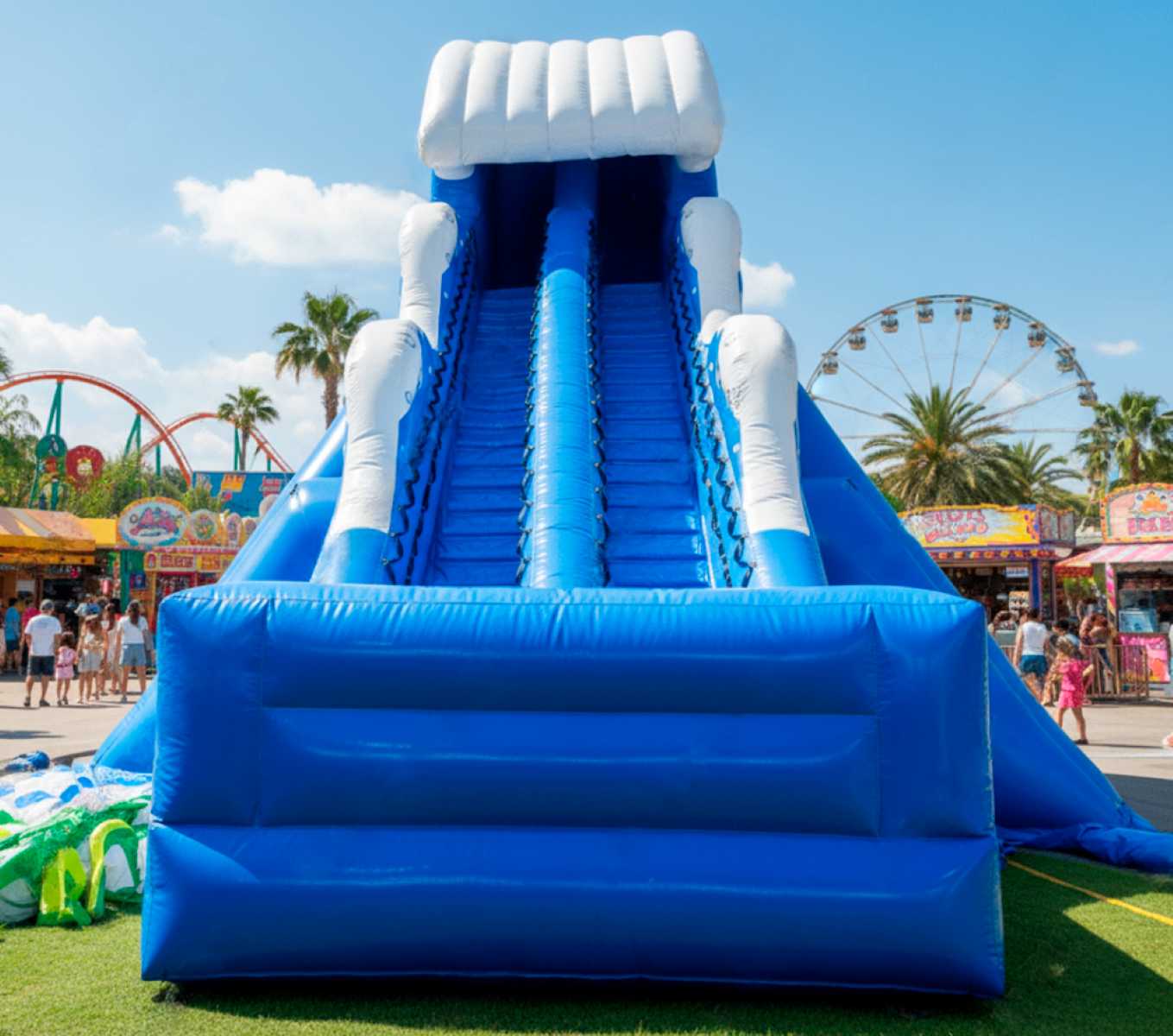 Двойной спуск позволяет обслуживать больше гостей одновременно, создавая поток веселья без ожидания. Морской дизайн с пенными волнами визуально подчёркивает эффект прохлады, а насыщенные оттенки синего и белого создают атмосферу прибоя даже вдали от воды. И всё это — без необходимости бассейна!