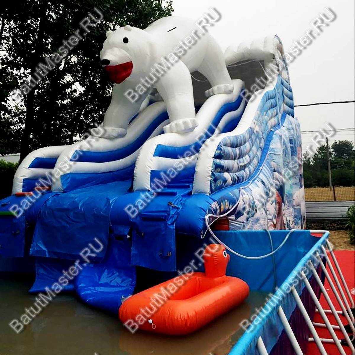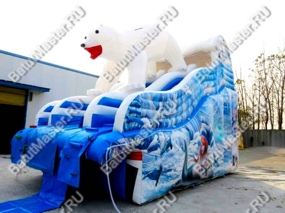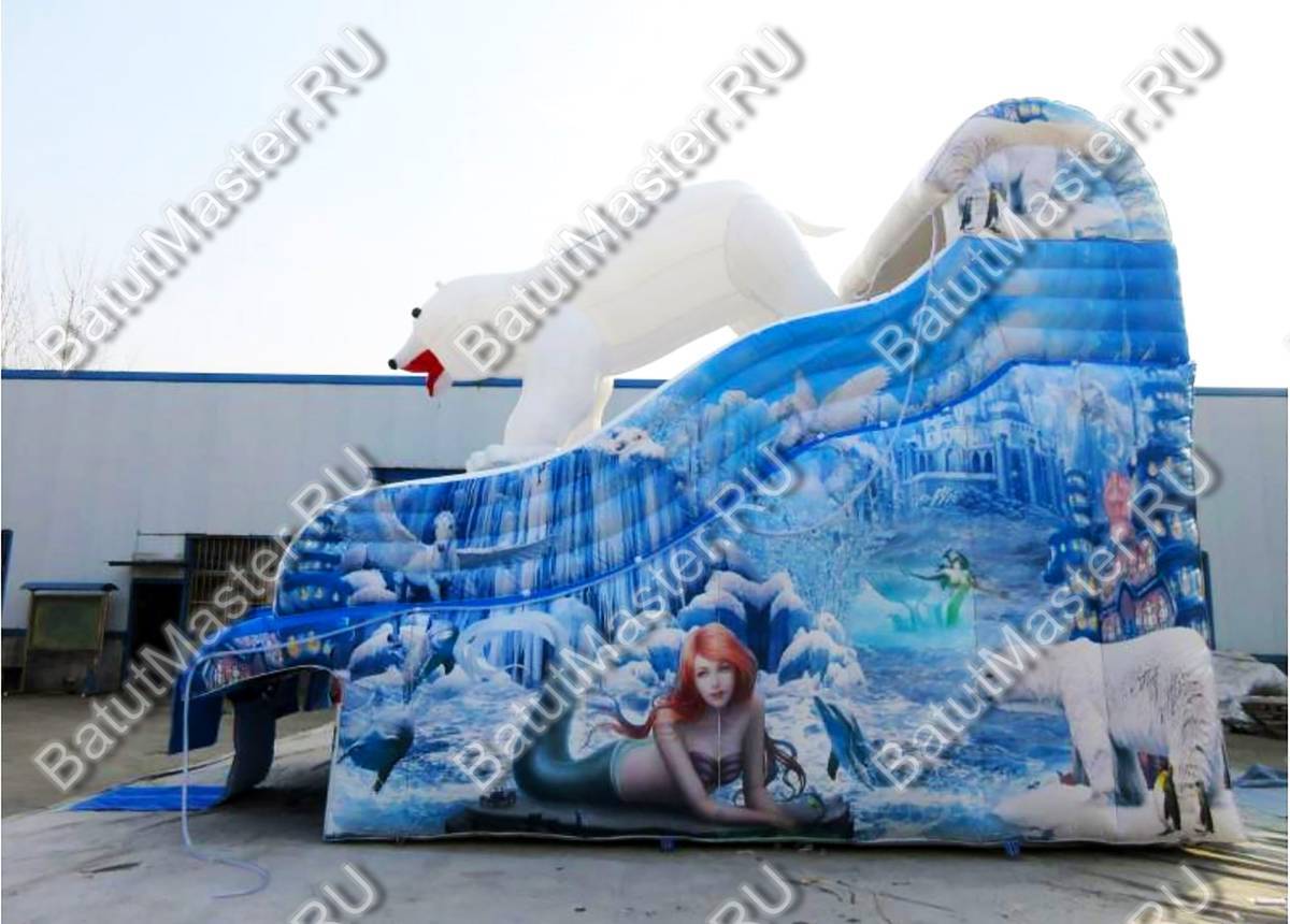 «Мишка на севере» — это эффектная надувная водная горка коммерческого класса, созданная для стабильного заработка на потоковых площадках. Габариты 8x4,5x5 м при общей площади установки около 36 м² позволяют органично вписать аттракцион в детские зоны развлекательных парков и аквапарков, не перегружая инфраструктуру и не требуя строительства бассейна: модель изначально спроектирована без встроенной чаши, поэтому её легко интегрировать в существующие брызговые зоны или эксплуатировать как «сухую» горку в жаркую погоду с легким орошением.