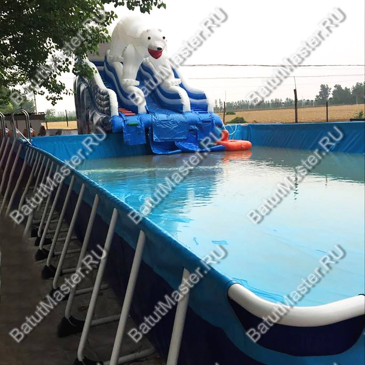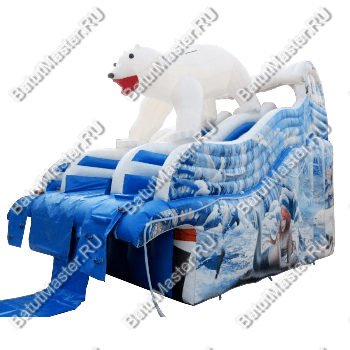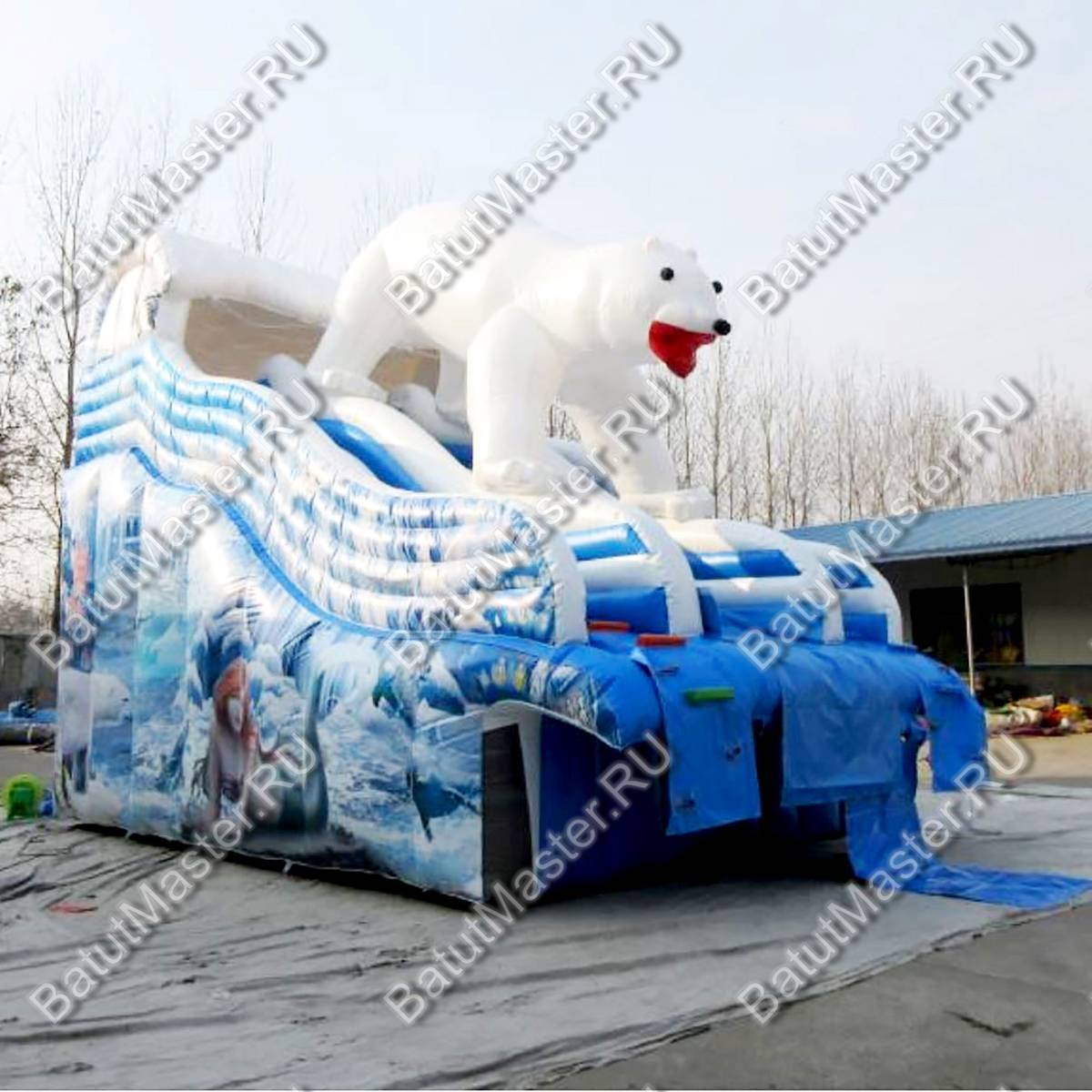 «Мишка на севере» — это эффектная надувная водная горка коммерческого класса, созданная для стабильного заработка на потоковых площадках. Габариты 8x4,5x5 м при общей площади установки около 36 м² позволяют органично вписать аттракцион в детские зоны развлекательных парков и аквапарков, не перегружая инфраструктуру и не требуя строительства бассейна: модель изначально спроектирована без встроенной чаши, поэтому её легко интегрировать в существующие брызговые зоны или эксплуатировать как «сухую» горку в жаркую погоду с легким орошением.