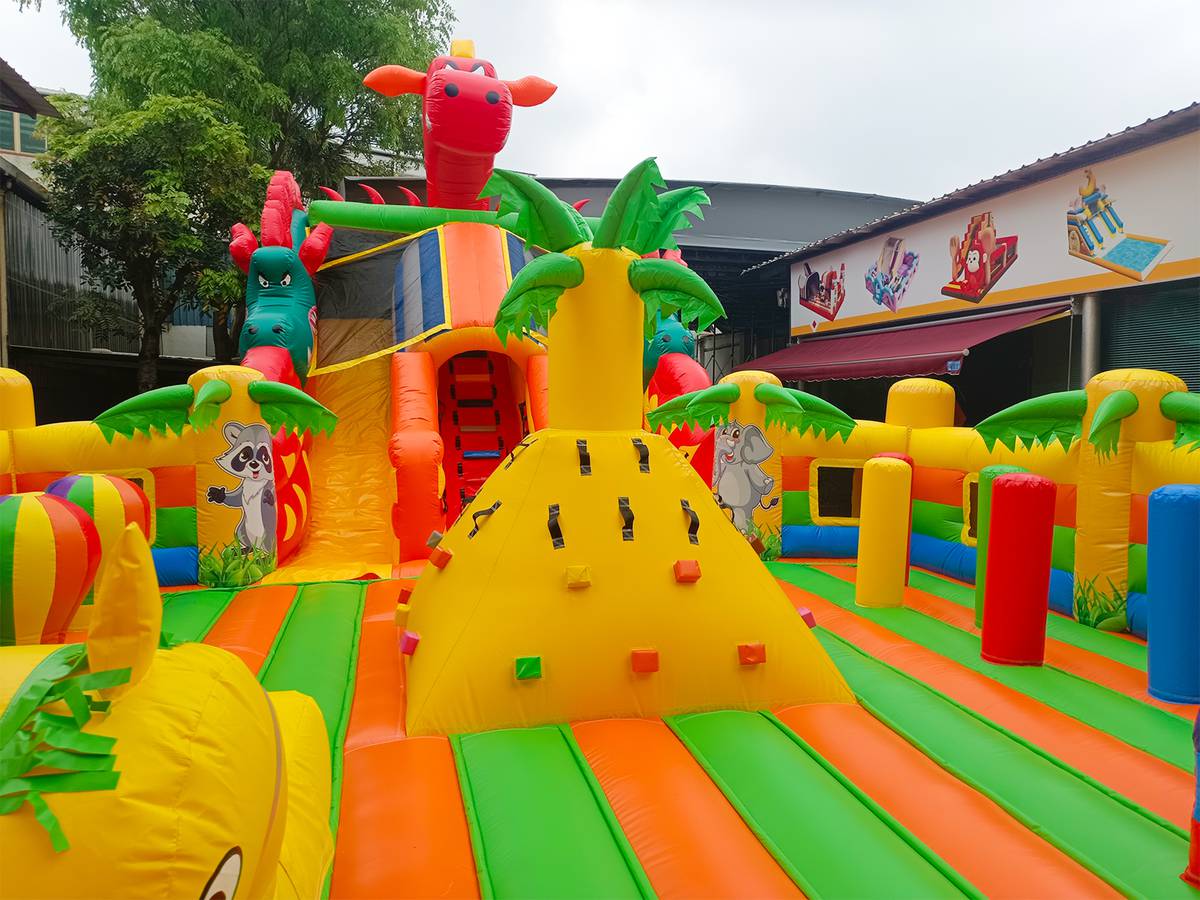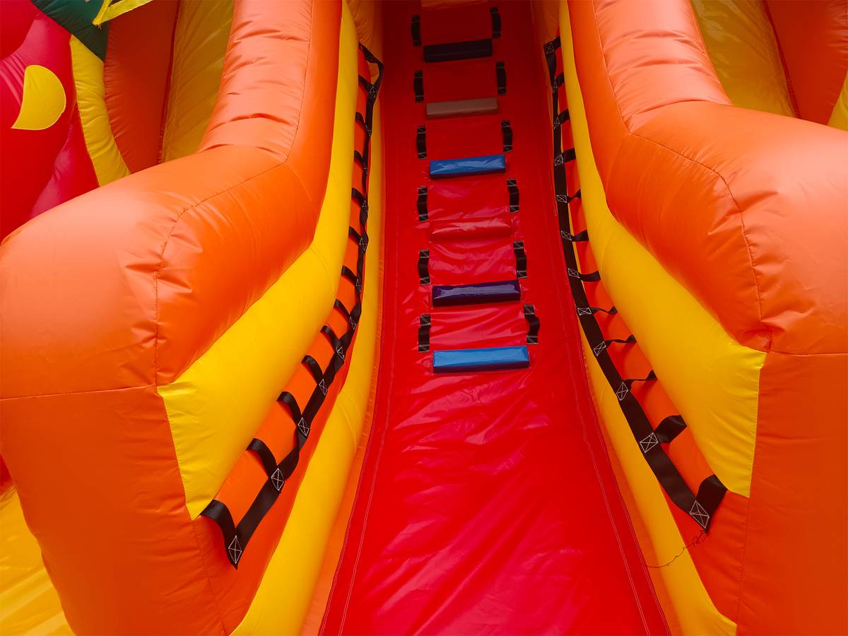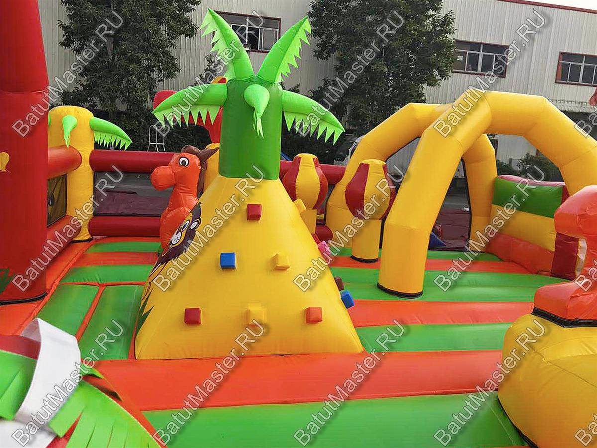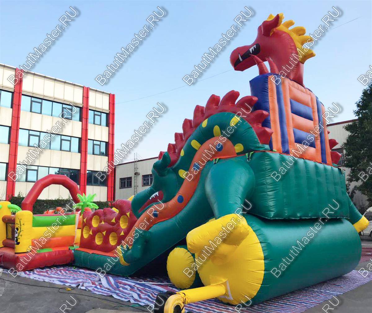 В его конструкции сочетаются горка, игровые фигуры, туннель, отдельные игровые зоны. Здесь же декоративные фигуры: три головы Змея Горыныча, пальмы. Весь комплекс огражден надувными барьерами и стенками. За время пребывания на аттракционе дети могут перемещаться из одной игровой зоны в другую. Они на скорости скатываются вниз по туннелю, по лестнице карабкаются на горку, на нижних игровых площадках можно попрыгать, преодолевая препятствия. Детская фантазия подсказывает различные сказочные сюжеты, которые тут же обыгрываются.