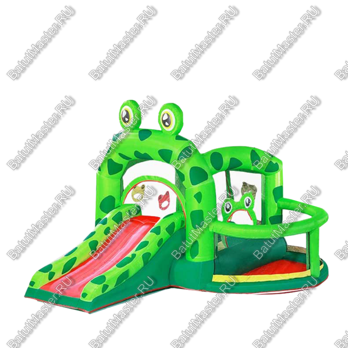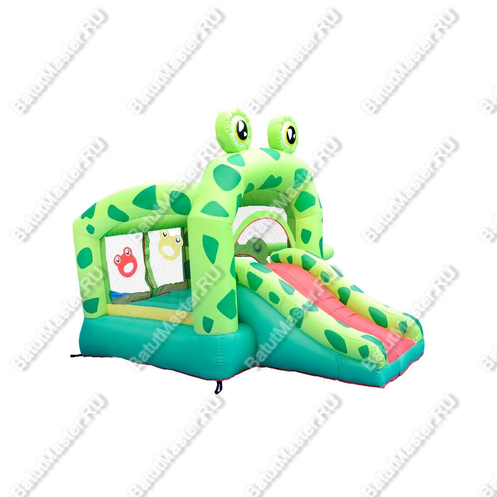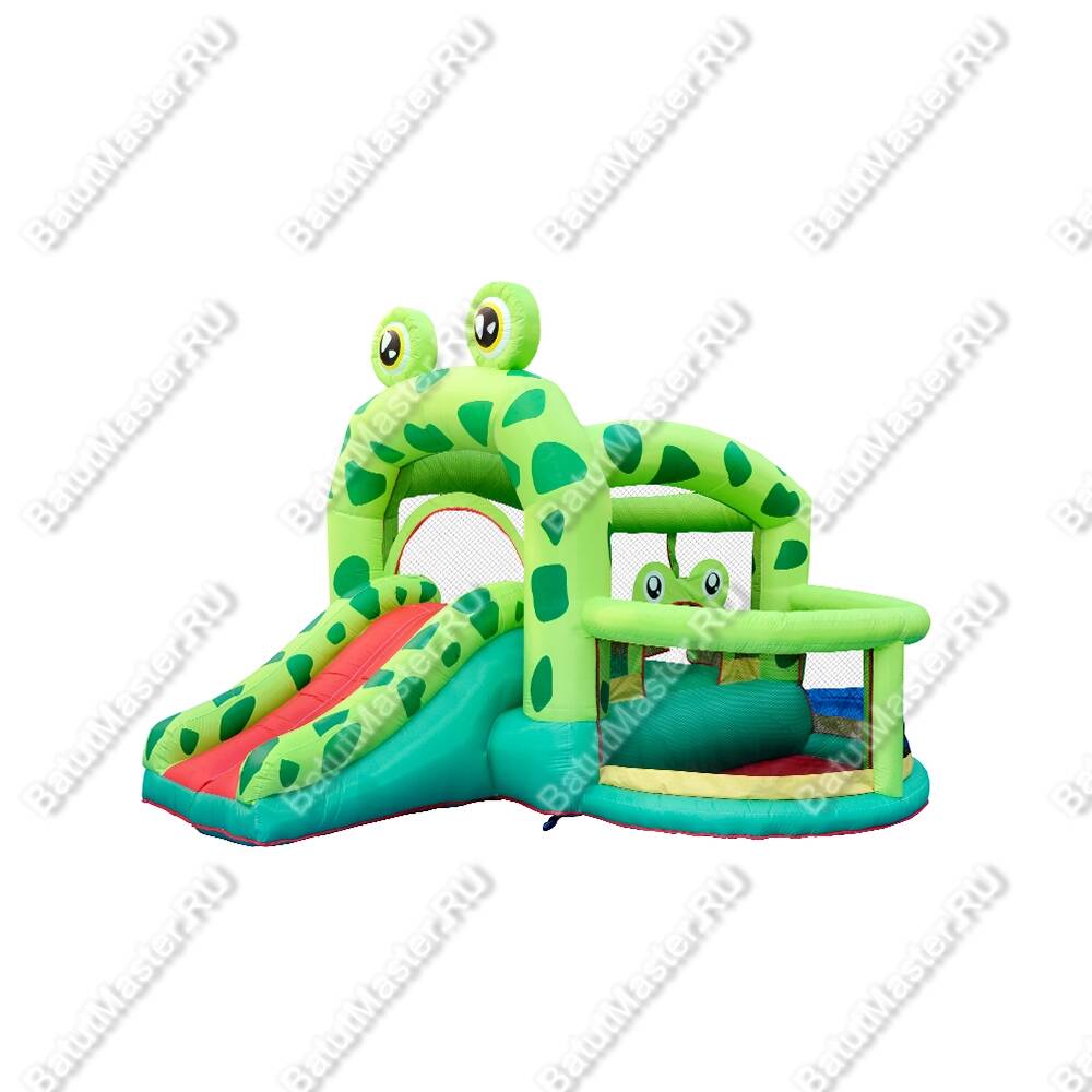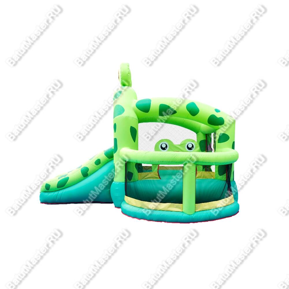 Коммерческий Батут для дачи «Лягушонок» может стать для детишек настоящим праздником, ведь аттракцион принесёт массу позитивных эмоций и запомнится на долгое время. Этот батут выделяется очень ярким дизайном. По сути, весь батут – целая декорация в виде весёлых лягушат. Конструкция не имеет стандартных прямых стен, вместо этого тут присутствуют надувные балки, между которыми натянута прозрачная сетка. Такая особенность делает внутреннее пространство батута более просторным, а также за детьми станет удобнее присматривать, что очень важно.