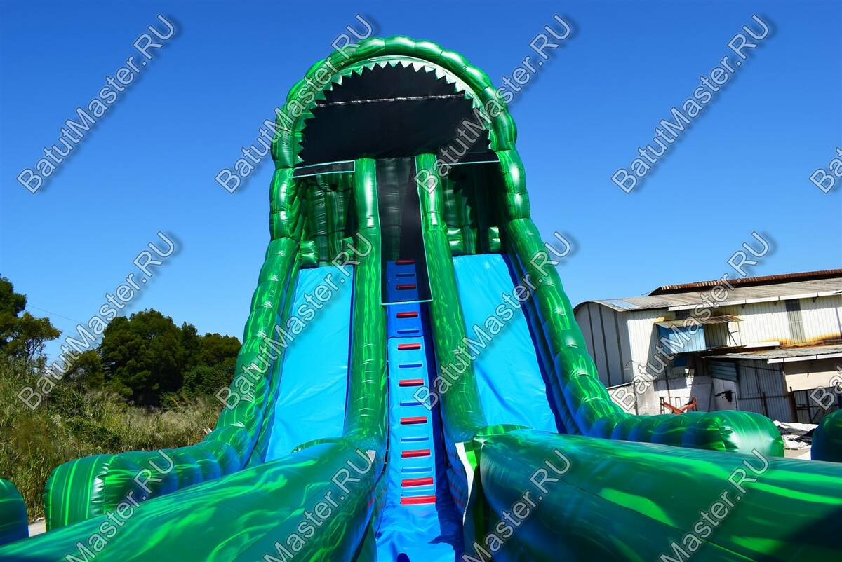 Надувной батут - горка «Тропический спуск» - это современный игровой комплекс среди игровых батутов, который оснащен двумя большими горками и зоной для прыжков. Здесь будет невероятно интересно детям разной возрастной категории.