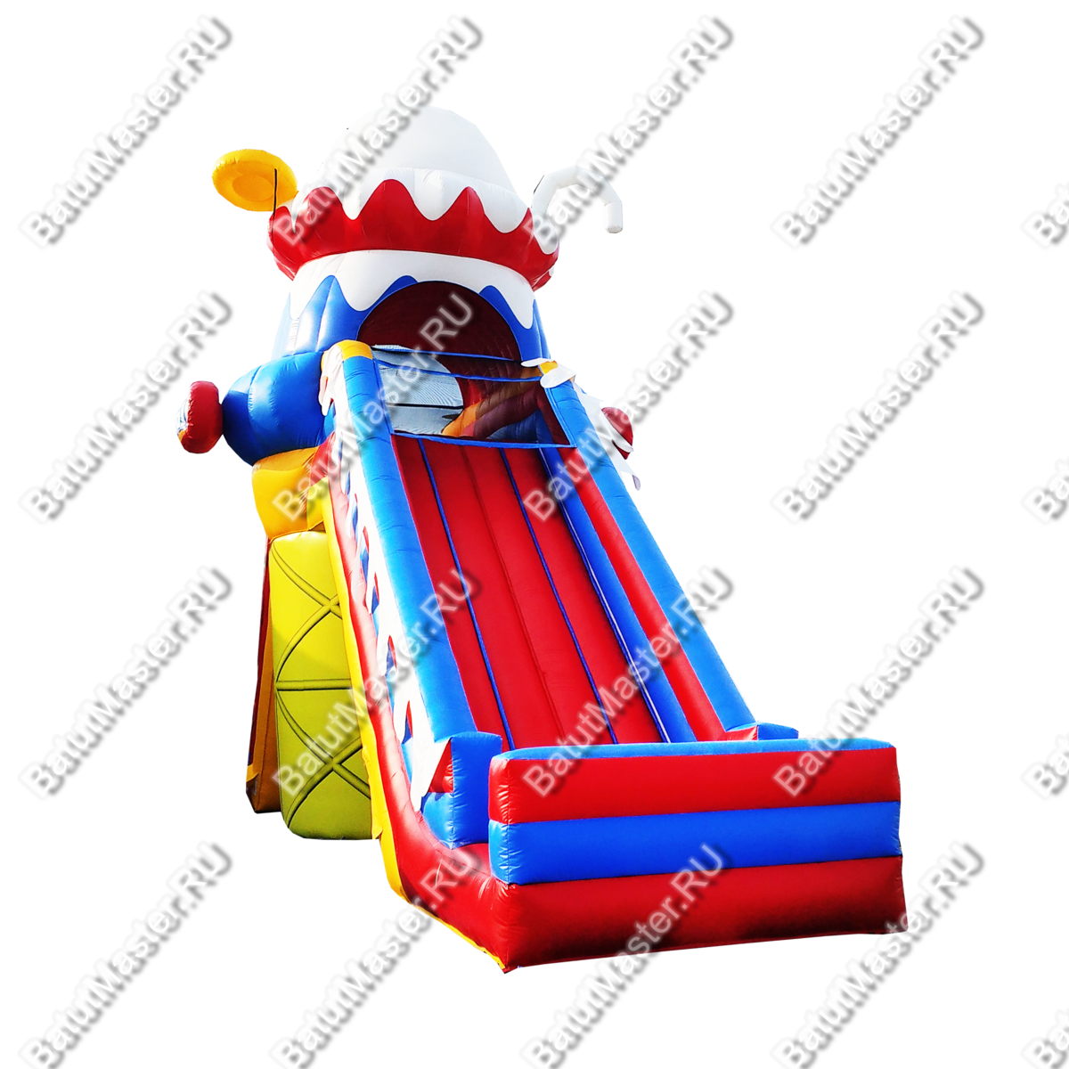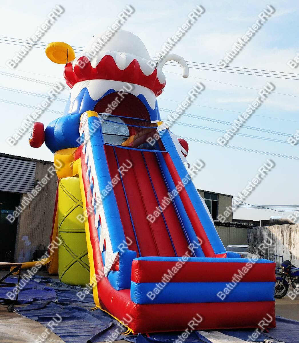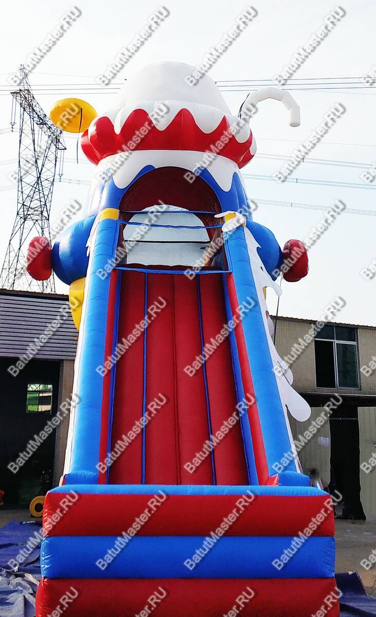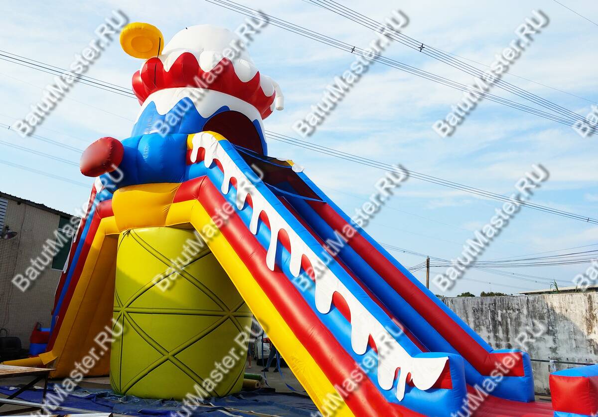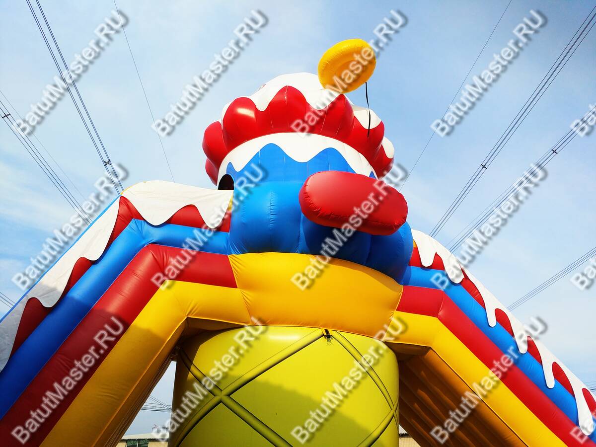Коммерческий батут для бизнеса «Крутой спуск» подарит каждому ребенку незабываемые эмоции и массу позитива. Только представьте, как необычно придется забираться наверх и кататься с ветерком, ведь конструкция сделана таким образом, что спуск резкий, что очень нравится юным непоседам. Посередине конструкция имеет надежную массивную опору и высокое основание, сделанное в виде аппетитного пирожного. Такой атрибут будет заметен издалека и дети непременно захотят покататься.