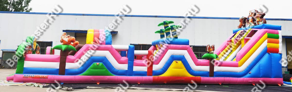 Надувная полоса препятствий «Мишки» - это уникальный комплекс для активных игр и веселого времяпровождения детей. Здесь маленькие первооткрыватели смогут проверить свою ловкость, силу и выносливость, а также получат незабываемые эмоции. Прямо со входа им нужно будет преодолеть надувные кольца, висячие груши, тоннель, несколько горок на всем пути и многое другое. Все это развивает тягу к состязанию за первое место. Здесь все яркое и мягкое, а значит прыгать, бегать и играть вдвойне приятнее.¶Комплекс будет отличным дополнением игровой площадки как на улице, так и полноценной игровой зоной в развлекательном центре.