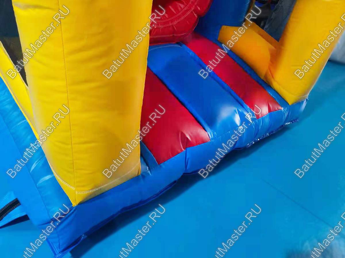 Материал, из которого состоит игровой комплекс, не выгорает на солнце, не сжимается при минусовой температуре. Используемый при производстве наших батутов ламинированный ПВХ зарекомендовал себя как высококачественная и надежная основа.