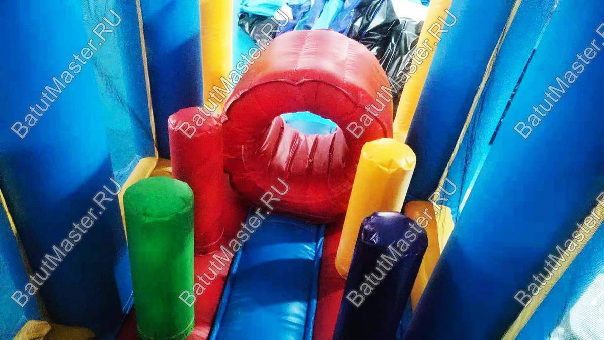 Надувной батут «Озорник» вобрал в себя все то, что так нравится юным непоседам. Здесь можно прыгать, кувыркаться, прятаться и все это делать веселой компанией. В первую очередь дети должны будут пролезть через тоннели, чтобы попасть в основную часть батута, но и там их ждут приключения. На пути встретятся вертикальные мягкие модули, за которые можно прятаться, а также прыгать на них. Чтобы скатиться с горки с ветерком, сначала, они должны будут забраться на стену, оснащенную прочными ремнями и отверстиями для ног. На таком батуте дети смогут не только резвиться, но и еще улучшить физические показатели, а именно координацию движений, ловкость и выносливость.