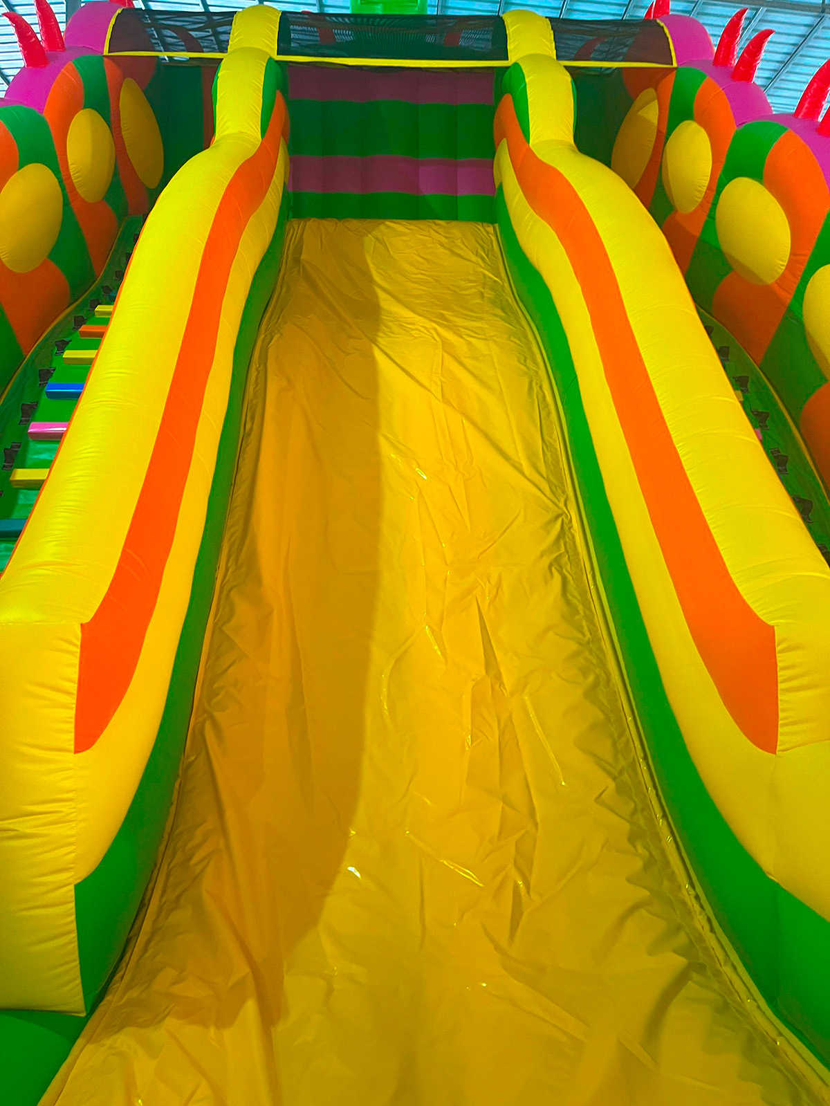 Размеры надувной горки — позволяет разместить до 20 детей одновременно. Горка с высотой старта в 5 метров, которая гарантирует детям массу восторга и ярких эмоций.