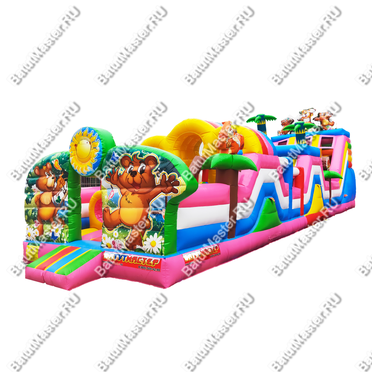 Надувная полоса препятствий «Мишки» - это уникальный комплекс для активных игр и веселого времяпровождения детей.  Здесь маленькие первооткрыватели смогут проверить свою ловкость, силу и выносливость, а также получат незабываемые эмоции. Прямо со входа им нужно будет преодолеть надувные кольца, висячие груши, тоннель, несколько горок на всем пути и многое другое. Все это развивает тягу к состязанию за первое место. Здесь все яркое и мягкое, а значит прыгать, бегать и играть вдвойне приятнее.¶Комплекс будет отличным дополнением игровой площадки как на улице, так и полноценной игровой зоной в развлекательном центре.