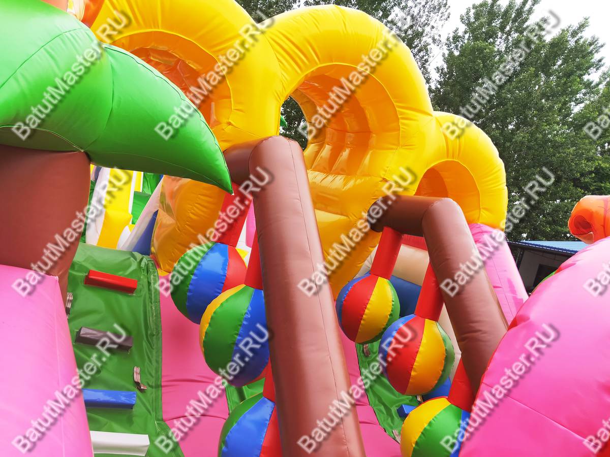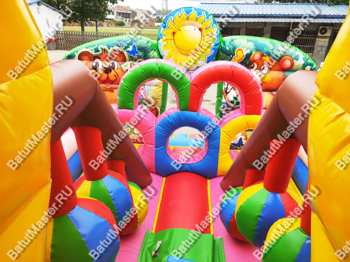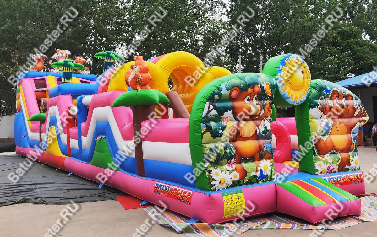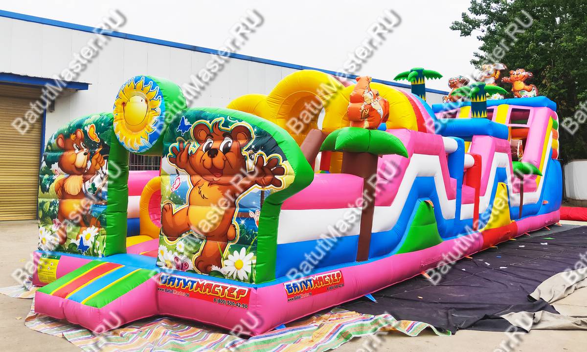 Надувная полоса препятствий «Мишки» - это уникальный комплекс для активных игр и веселого времяпровождения детей.  Здесь маленькие первооткрыватели смогут проверить свою ловкость, силу и выносливость, а также получат незабываемые эмоции. Прямо со входа им нужно будет преодолеть надувные кольца, висячие груши, тоннель, несколько горок на всем пути и многое другое. Все это развивает тягу к состязанию за первое место. Здесь все яркое и мягкое, а значит прыгать, бегать и играть вдвойне приятнее.¶Комплекс будет отличным дополнением игровой площадки как на улице, так и полноценной игровой зоной в развлекательном центре.