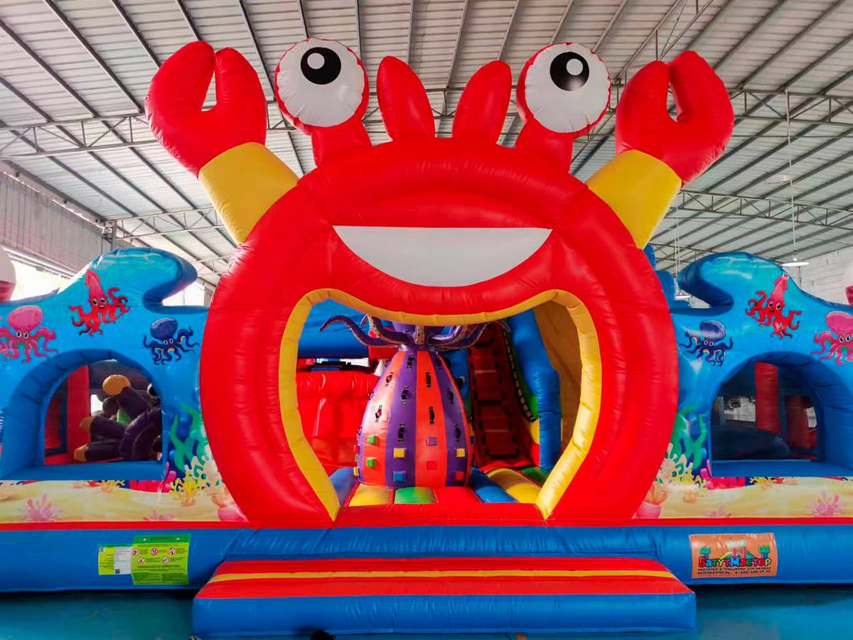 «Крабиссимо» — не просто батут, а полноценный развлекательный аттракцион, оформленный в морской тематике. Его визуальный образ основан на ярких красках, мультяшных морских обитателях, включая большого краба с широкой улыбкой и скалодромом-драконом, что моментально притягивает внимание. Благодаря яркому дизайну, «Крабиссимо» становится центром притяжения на любом мероприятии: фестивале, в парке, на стадионе или в торговом центре. Размеры 11x9x7 м позволяют разместить до 28 детей одновременно, при этом предусмотрена высокая пропускная способность и безопасность на каждом этапе.