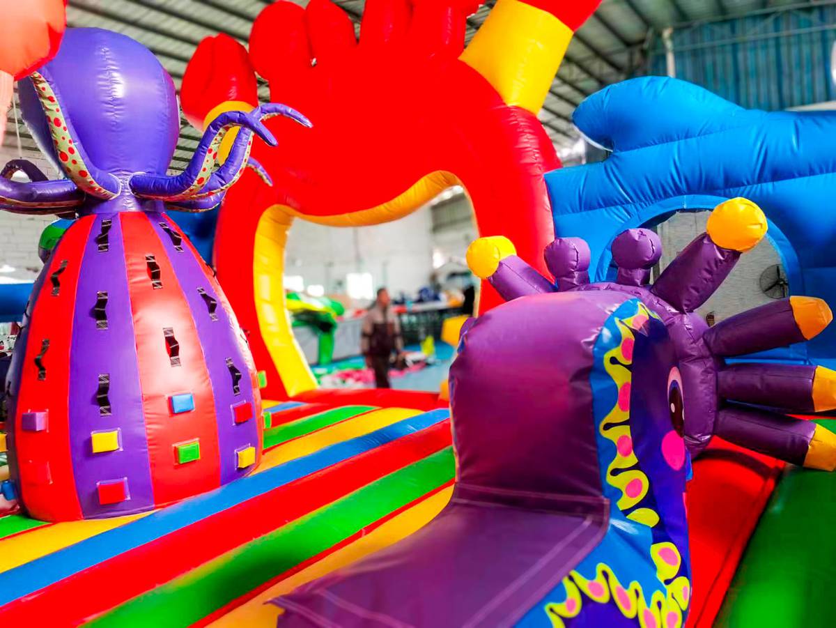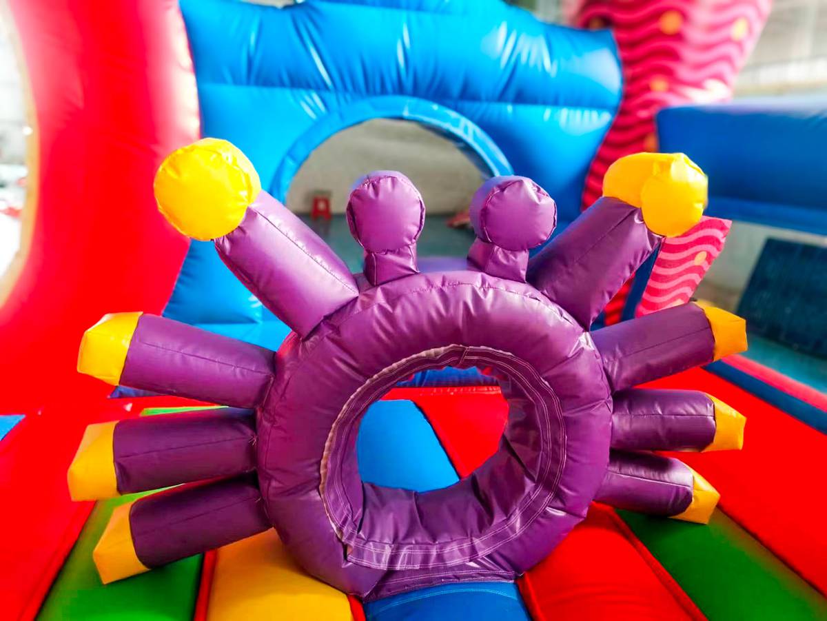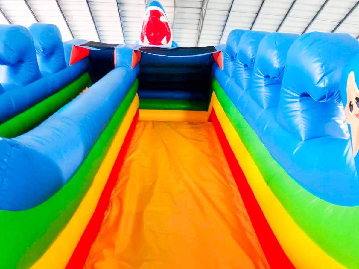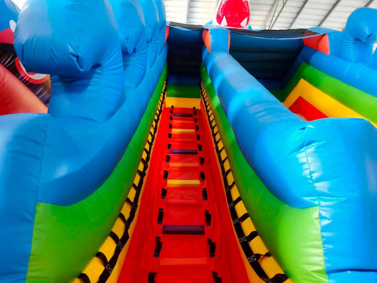 Изготовлен из армированного ПВХ плотностью 690 г/м² — материал устойчив к порезам, истиранию, морозам и жаре (от -15°C до +65°C). Несмотря на внушительный размер, аттракцион легко устанавливается, комплектуется насосом, ремнабором, чехлом и таймером. Работает от стандартной сети (180–240 В), потребление — 4 кВт. Каждая зона аттракциона продумана до мелочей — от мягких преград до безопасного спуска с горки. В комплекте — вся необходимая эксплуатационная документация и сертификация по ТР ЕАЭС 038/2016.