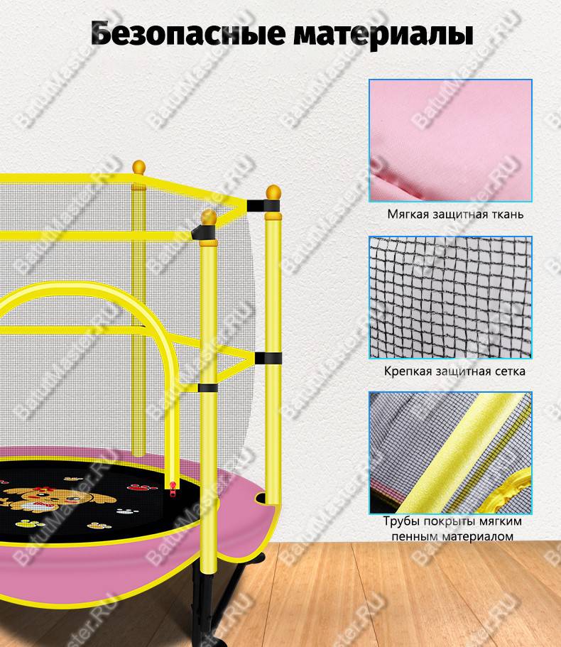 - ставьте батут на ровную поверхность без острых предметов рядом;