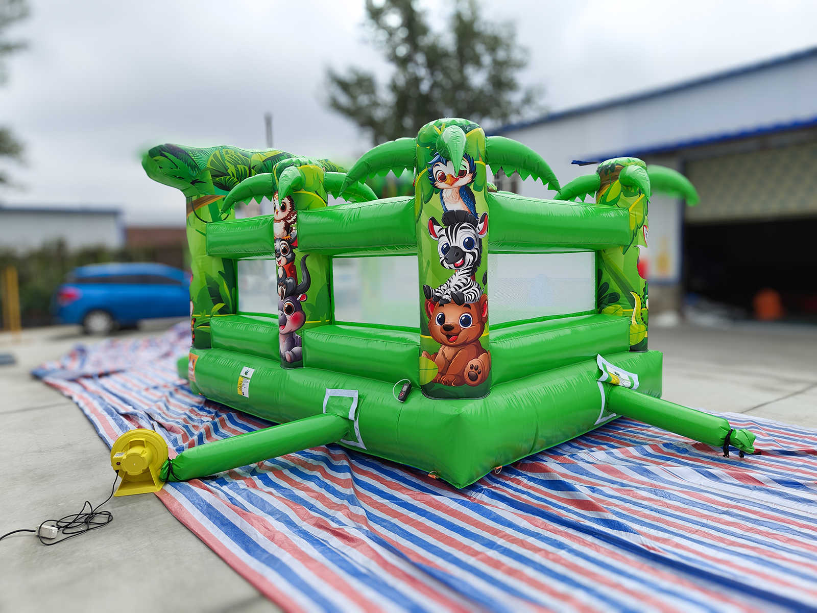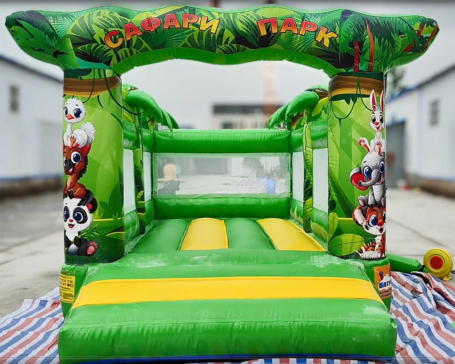 Коммерческий надувной батут «Национальный парк» 4x3x2,5 м — это уникальный аттракцион, сочетающий в себе развлечение и практическую выгоду. Его оформление в стиле зелёных джунглей с милыми персонажами — слонёнком, тигрёнком, зайчиком и попугаем — мгновенно привлекает внимание малышей и создаёт настроение праздника. Благодаря компактным размерам он идеально подходит для установки как на улице, так и в помещении.