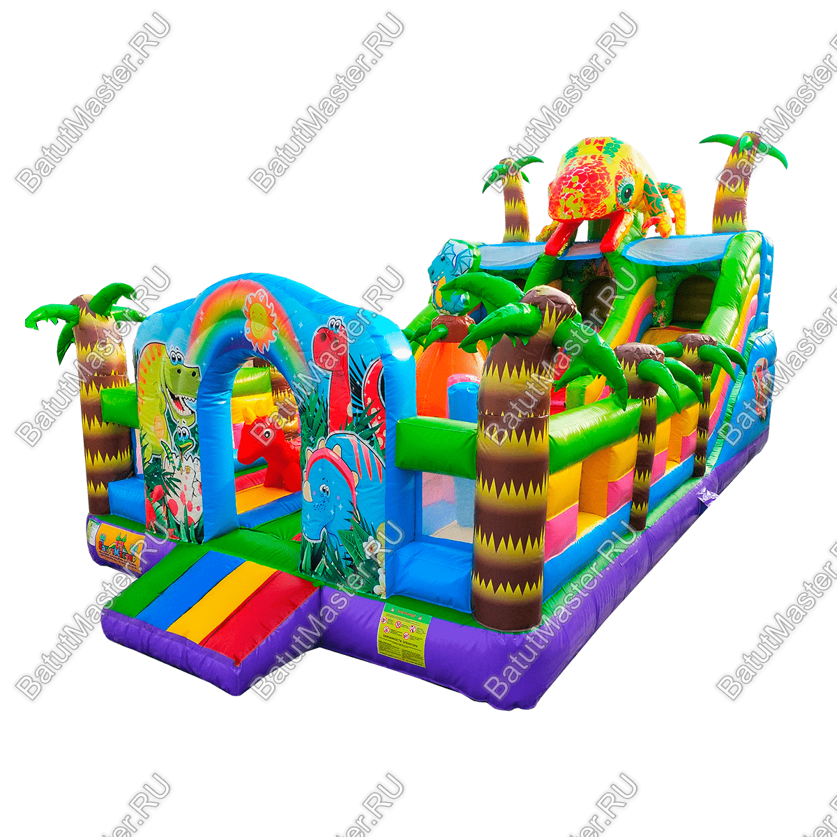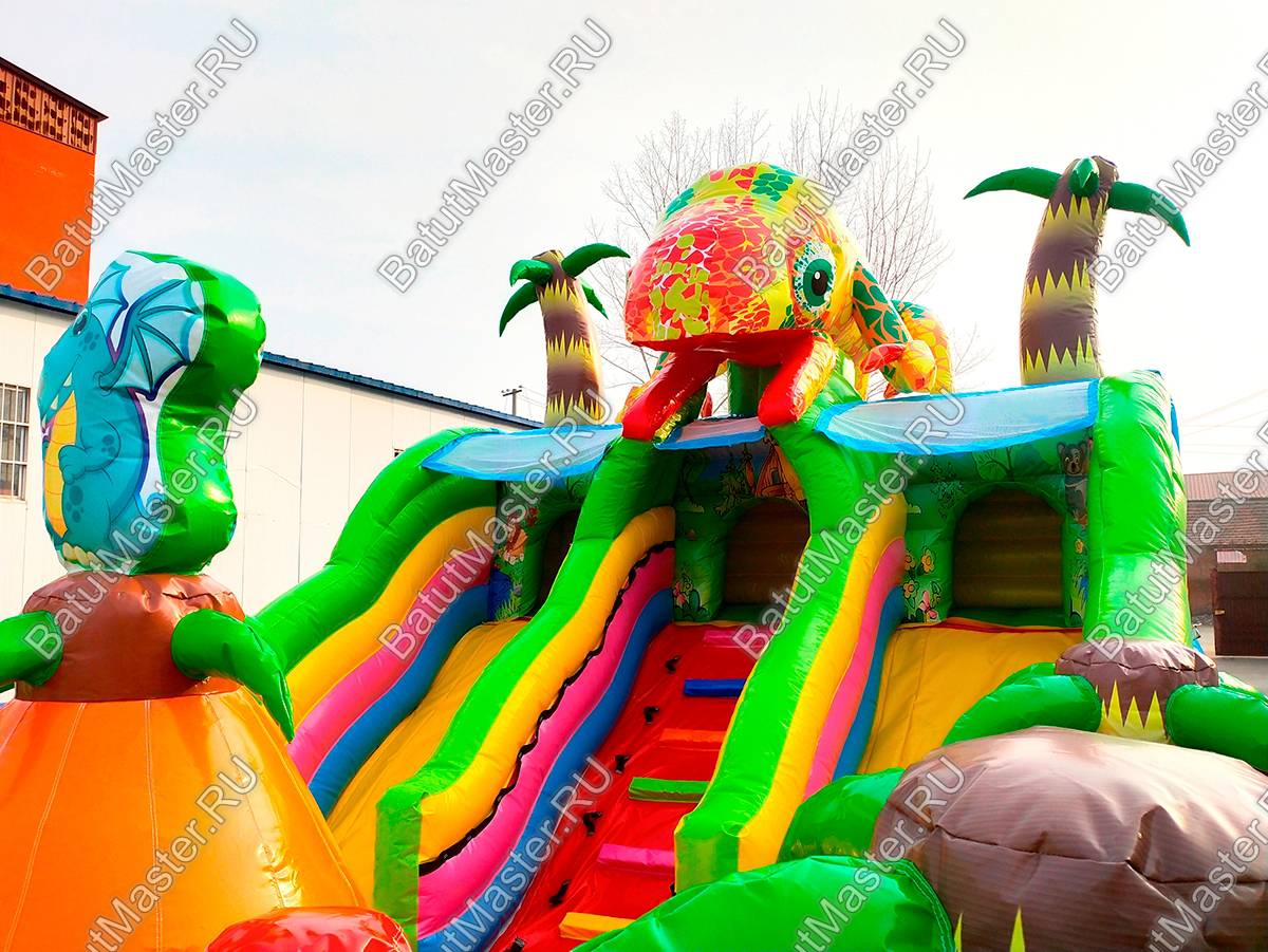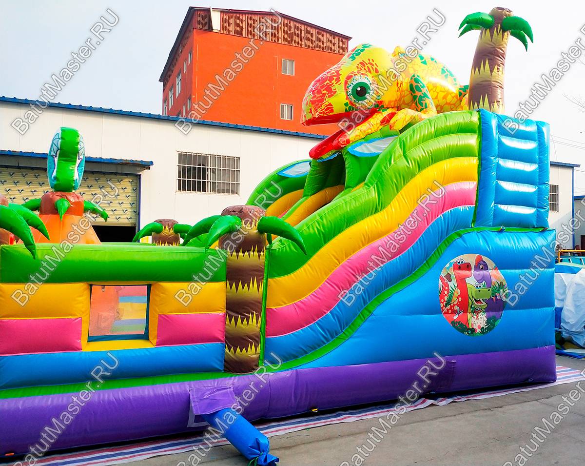 Коммерческий надувной батут "Хамелеон и динозавры" 9х5х5 м