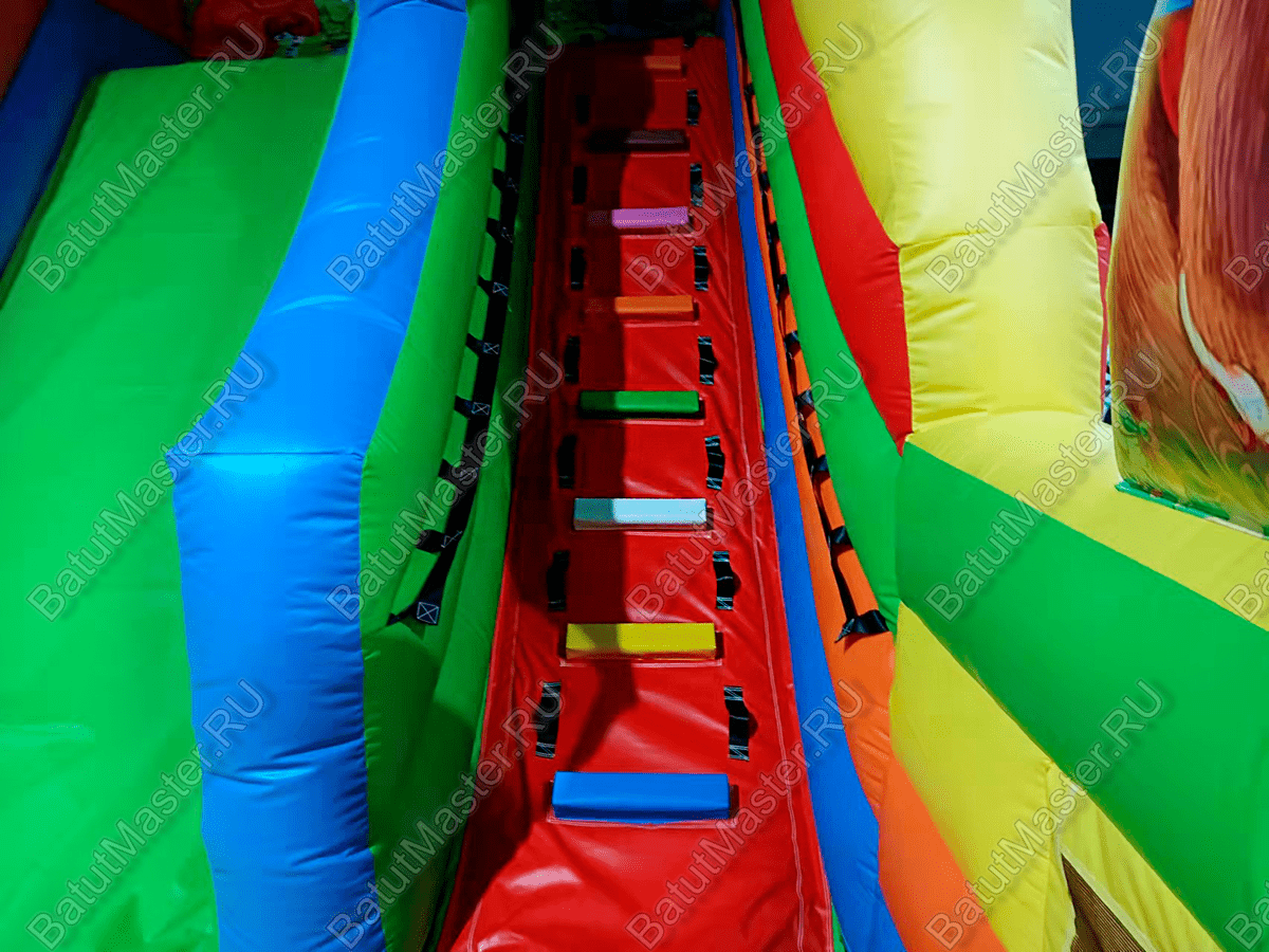 Производитель надувной горки «Русская народная», компания БатутМастер, предлагает клиентам заказать любые изменения. Можно дополнить или убрать элементы конструкции, установить пневматическую пушку, изменить цвет, заказать брендирование.