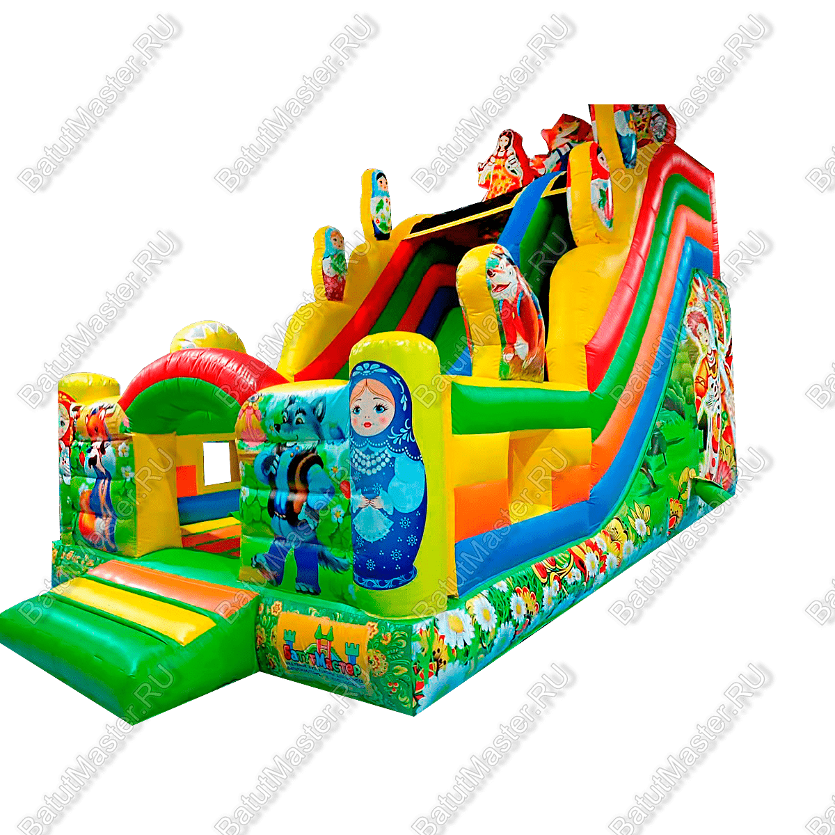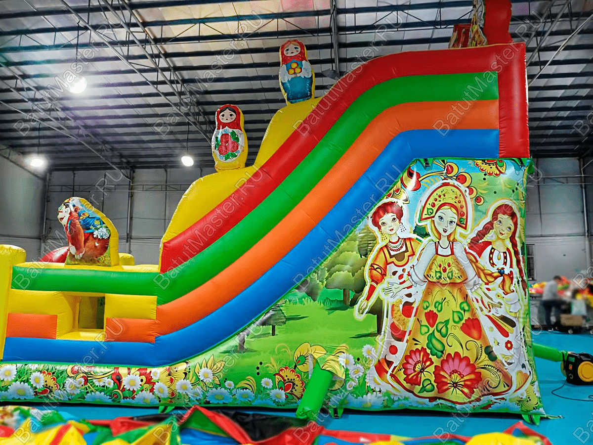 Аттракцион популярен у детей, они как никто другой любят кататься по нескольку человек разом. Надувная горка «Русская народная» вызывает море положительных эмоций у детей всех возрастов.