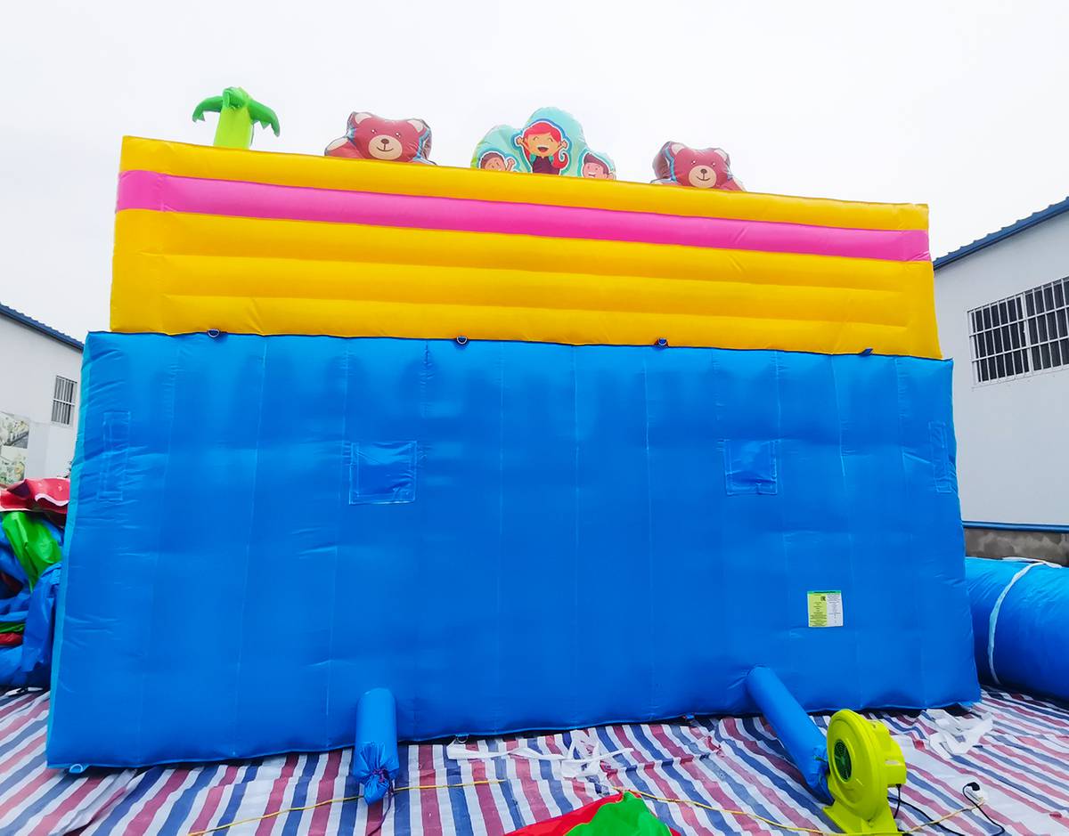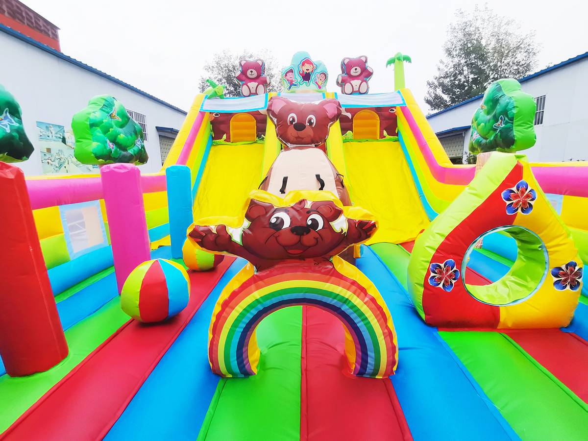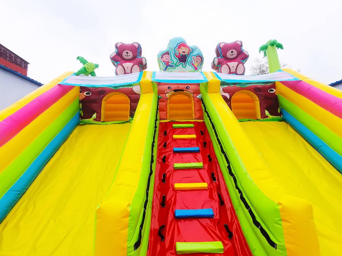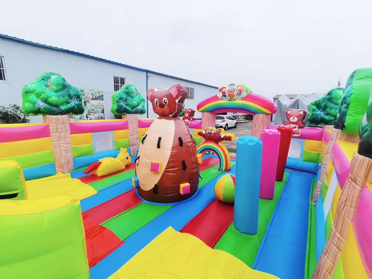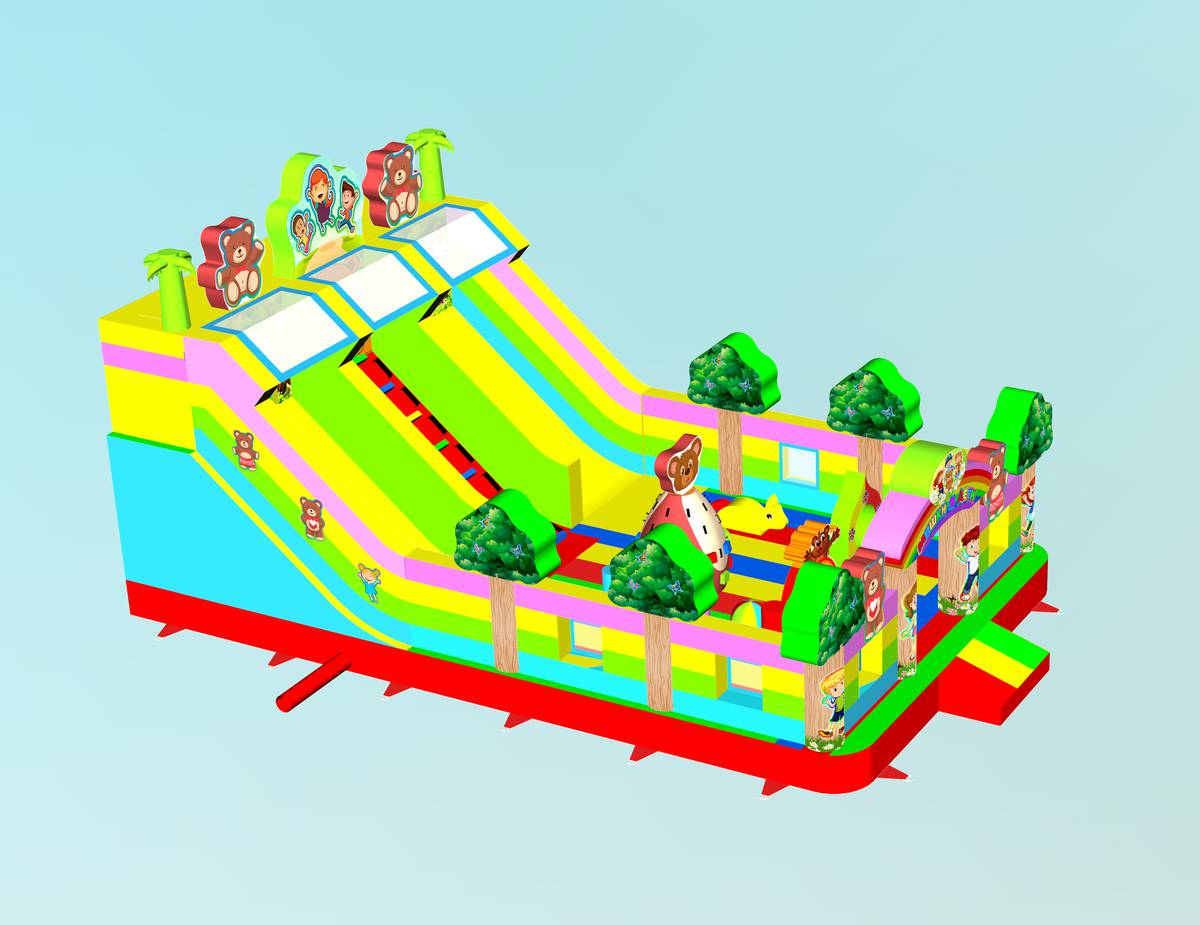 "Мишки и дети" — это не просто батут, а целая развлекательная станция! Он выполнен в форме веселого лесного уголка с надувными деревьями, добрыми мишками, улыбающимися детьми и яркой цветовой гаммой, которая мгновенно притягивает внимание малышей и родителей. Размер батута — 10x6x5 метров, что позволяет разместить до 17 детей одновременно.