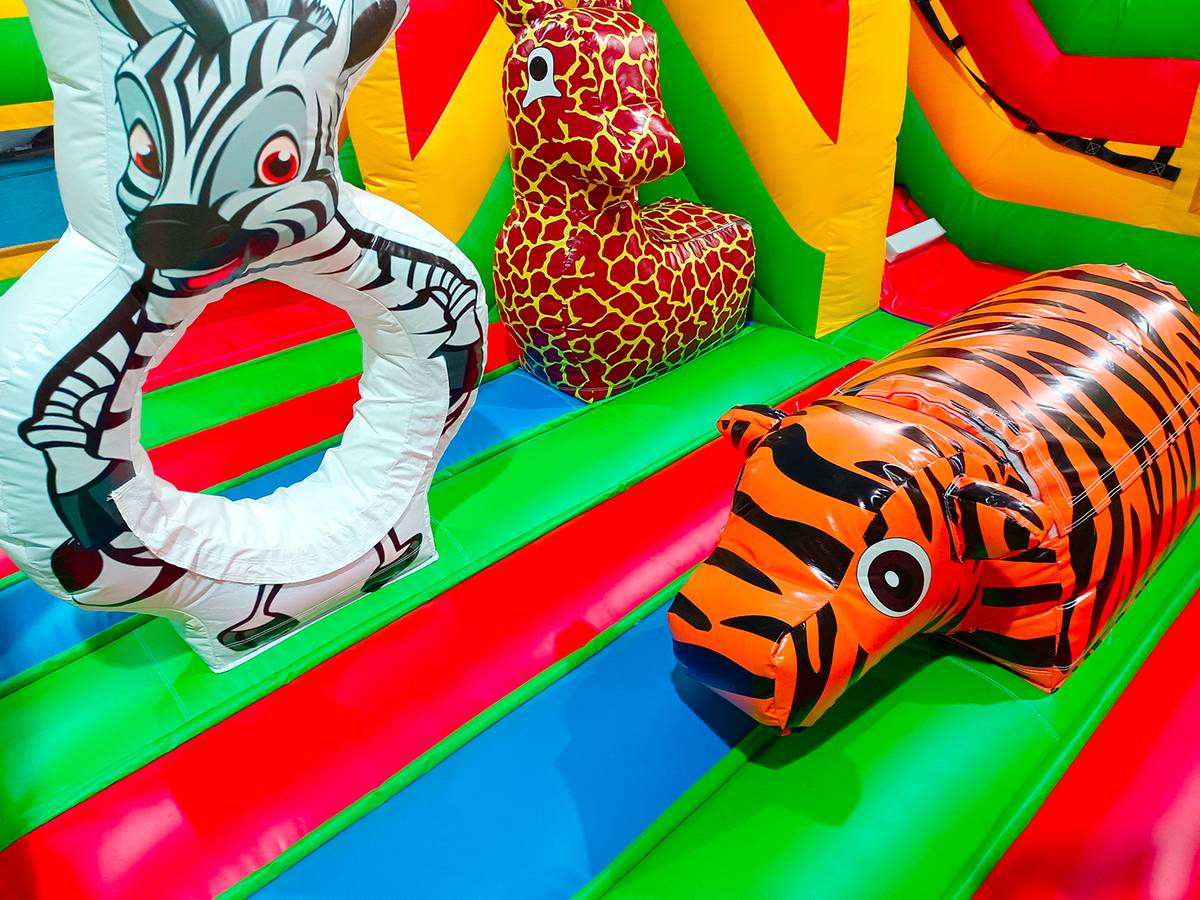 ПВХ материал батута «Сафари-джунгли ЭКСТРА» полностью безопасен, не выделяет токсинов. Устойчив к жаре и небольшим морозам, что позволяет эксплуатировать надувной батут на открытом воздухе или под крышей в коммерческих целях.