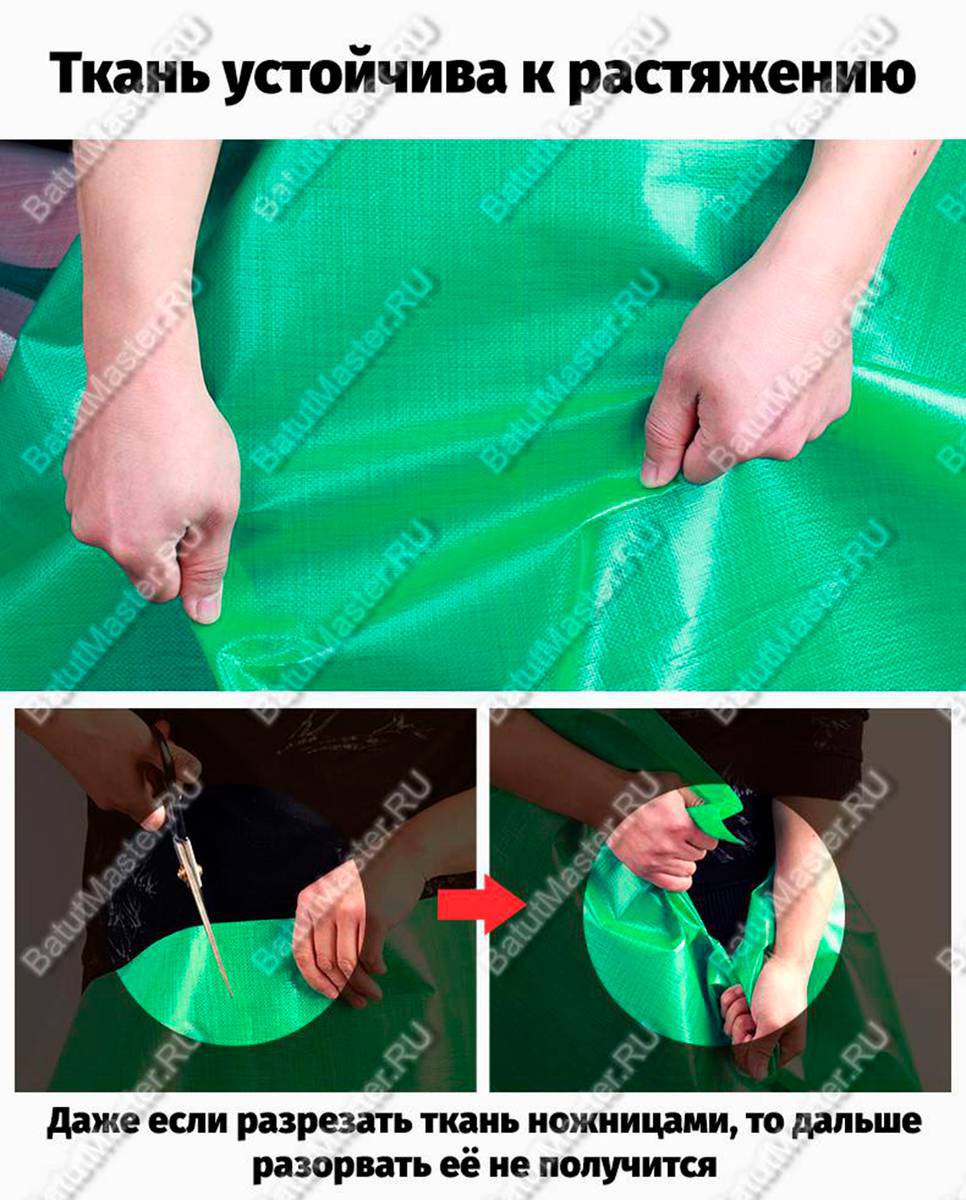 - Продление срока службы оборудования. Без подложки нижняя часть батута подвергается активному износу из-за постоянного трения об землю при прыжках. В результате быстрее появляются протёртости, микроповреждения и утечка воздуха.
