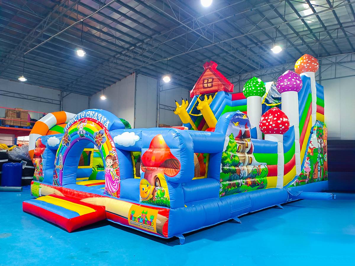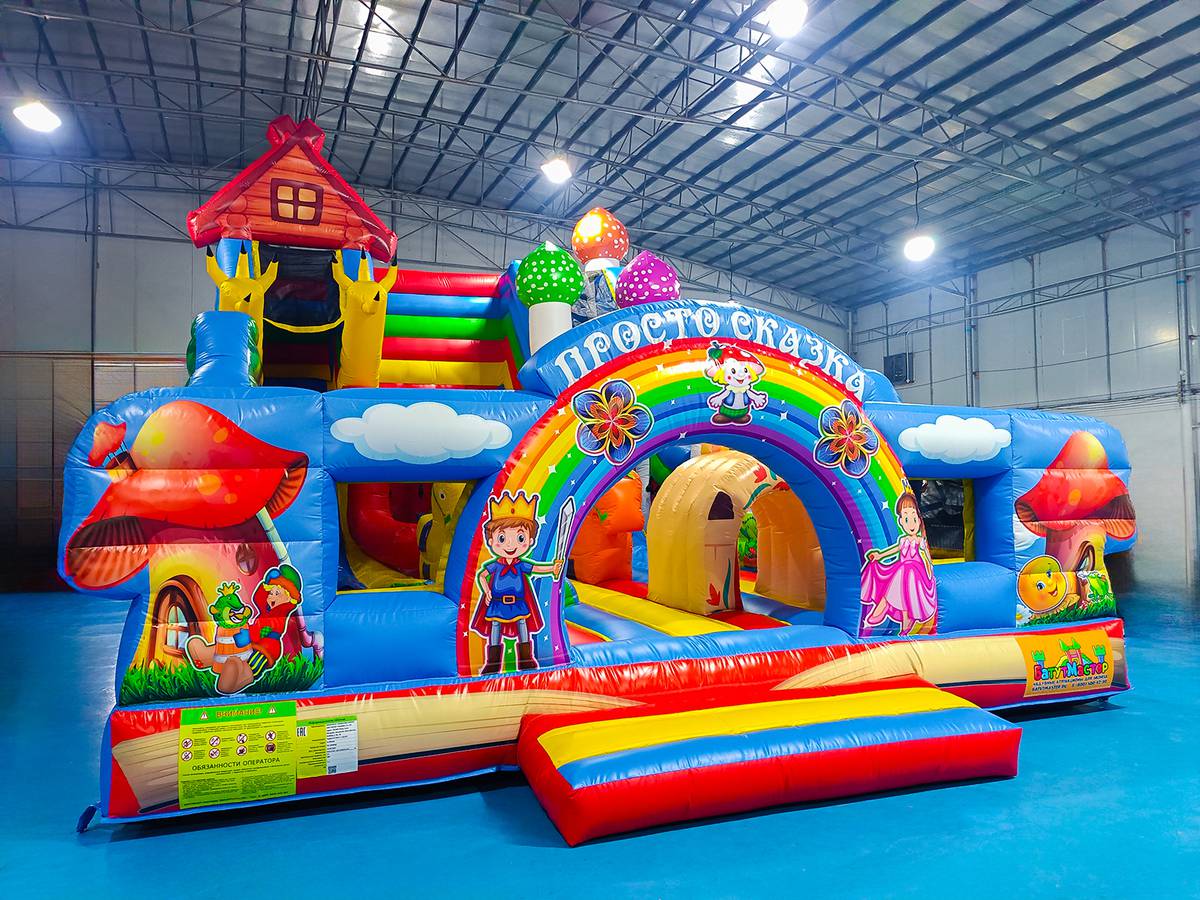 Что больше всего привлекает внимание детей и родителей? Конечно же, сказка! «Просто сказка 2» — это не просто батут, это целый сюжетный мир. Яркие цвета, фигурки сказочных героев, грибочки, деревья, замок на вершине горки — всё продумано до мелочей. Каждая деталь вызывает восторг у детей и визуально выделяет вашу площадку среди конкурентов.