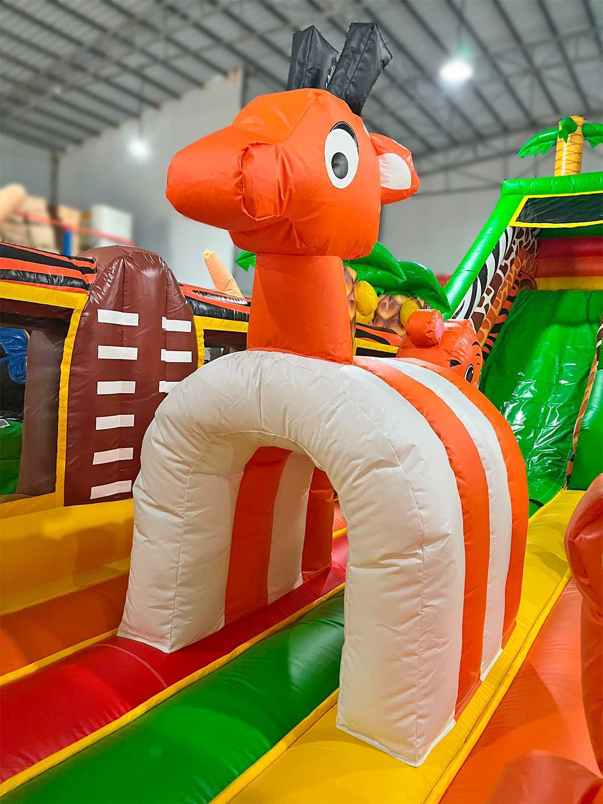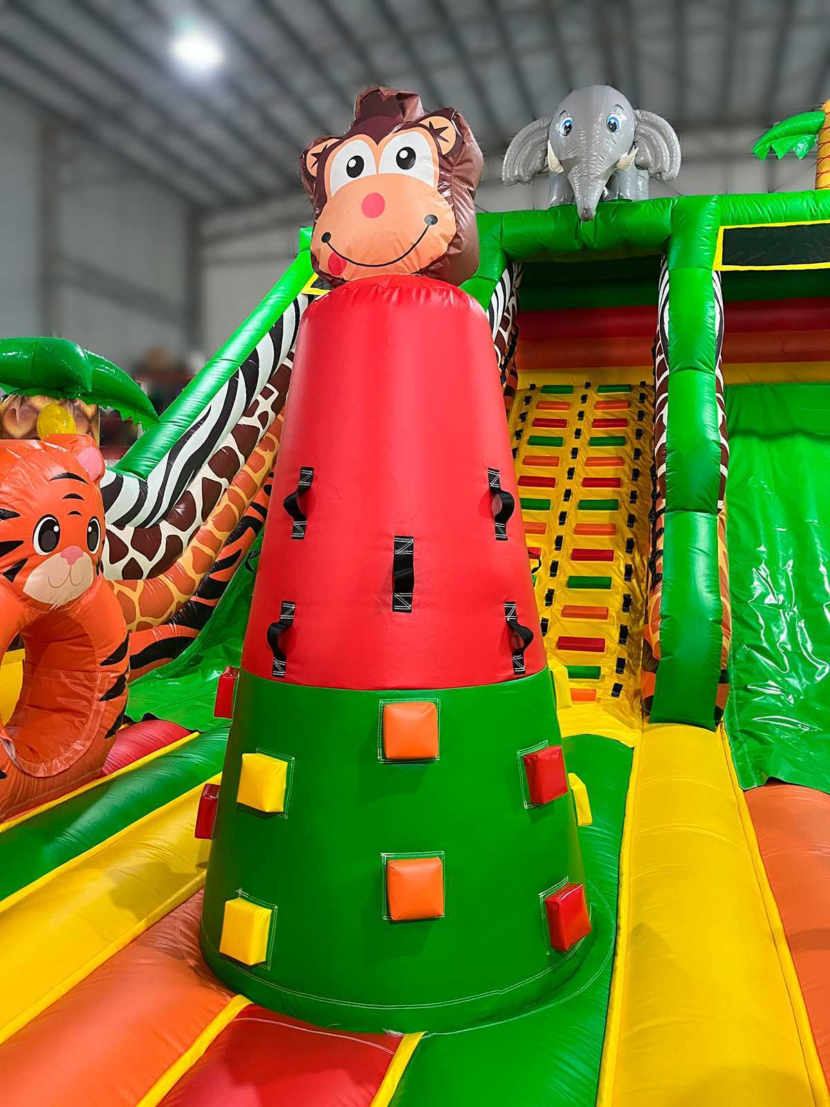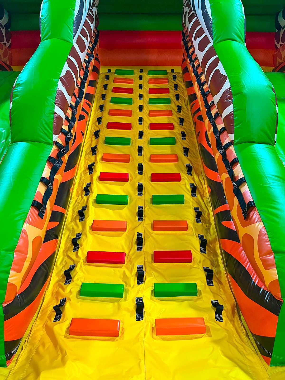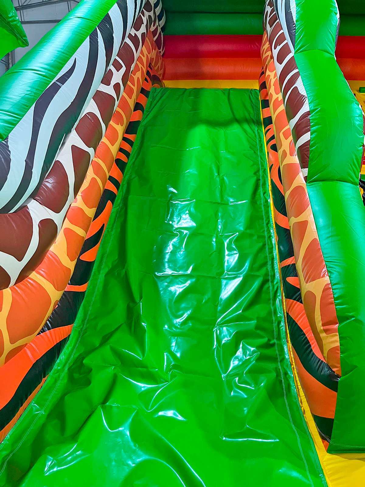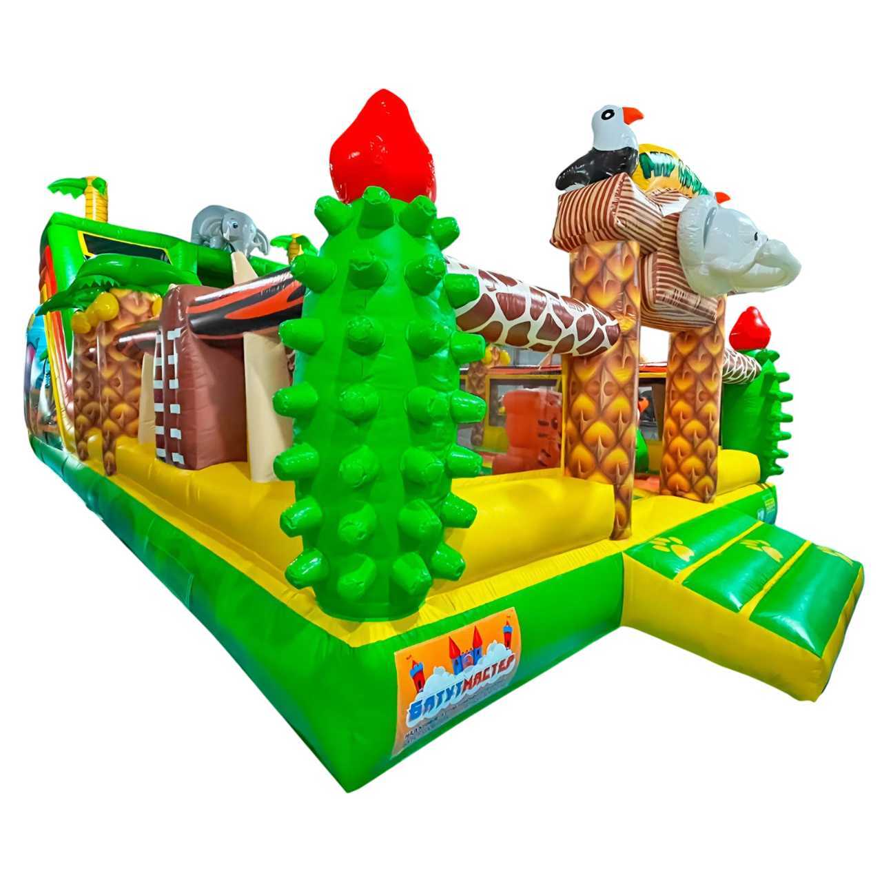 «Сафари Ультра 2» — это не просто батут, это полноценный детский мир, в котором яркие образы африканских животных оживают и зовут на поиски приключений. Огромный надувной батут с размерами 12x6x6 м сразу привлекает внимание благодаря своим масштабам и дизайну: пальмы, тигры, попугаи, жирафы, обезьяны — каждая деталь продумана для создания сказочной атмосферы.