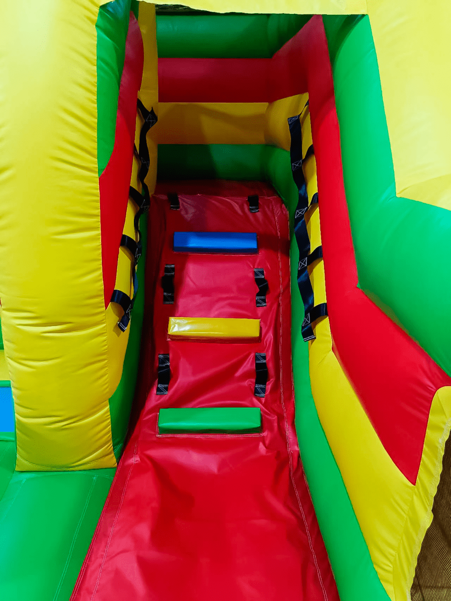 ПВХ материал батута «Сафари-джунгли ЭКСТРА» полностью безопасен, не выделяет токсинов. Устойчив к жаре и небольшим морозам, что позволяет эксплуатировать надувной батут на открытом воздухе или под крышей в коммерческих целях.