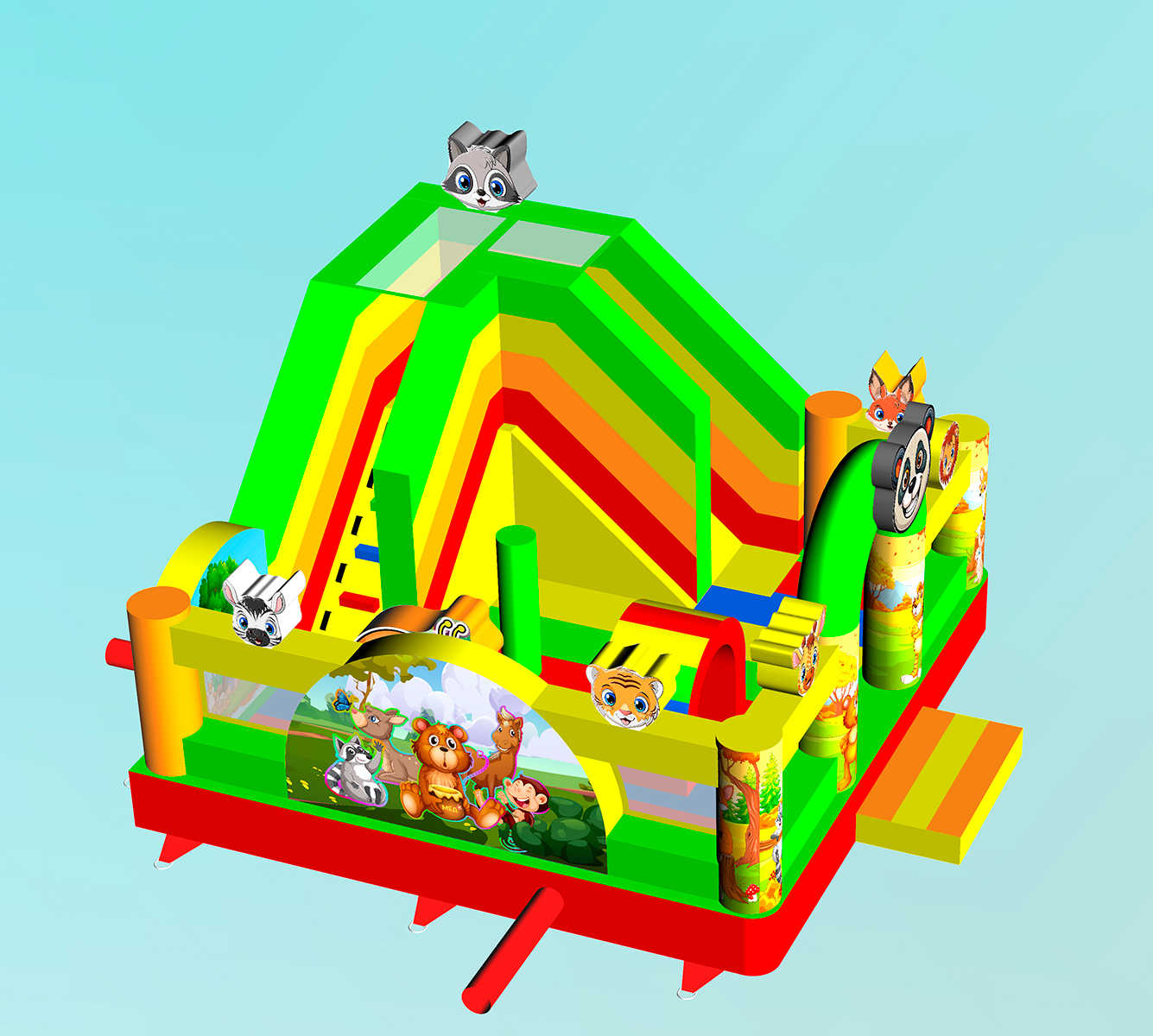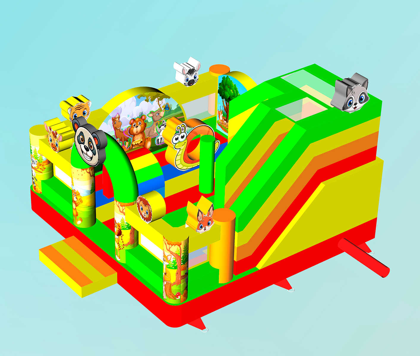 Коммерческий надувной батут «Добрые зверята» 5x5x3.5 м — это не просто игровой аттракцион, а настоящий центр притяжения для детей. Его яркий дизайн с изображениями милых животных, большая игровая зона, горка и увлекательные препятствия моментально превращают любое пространство.