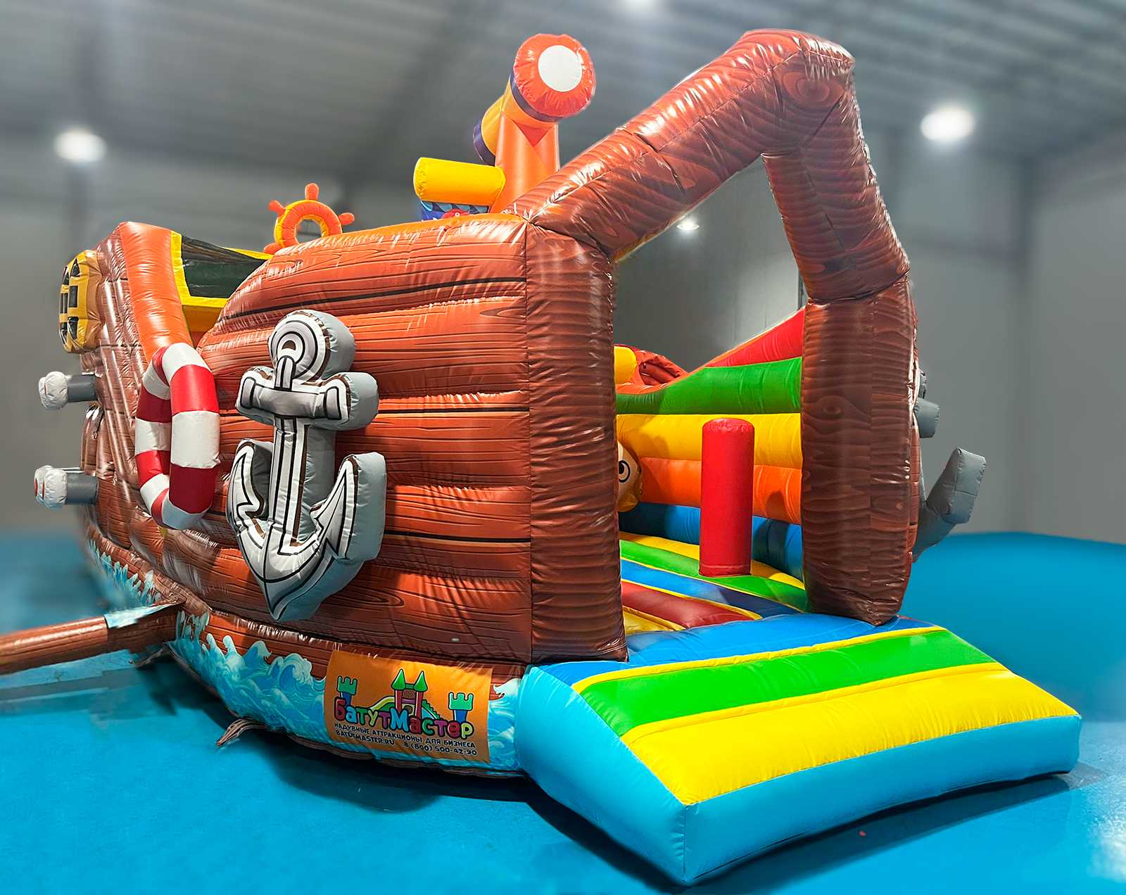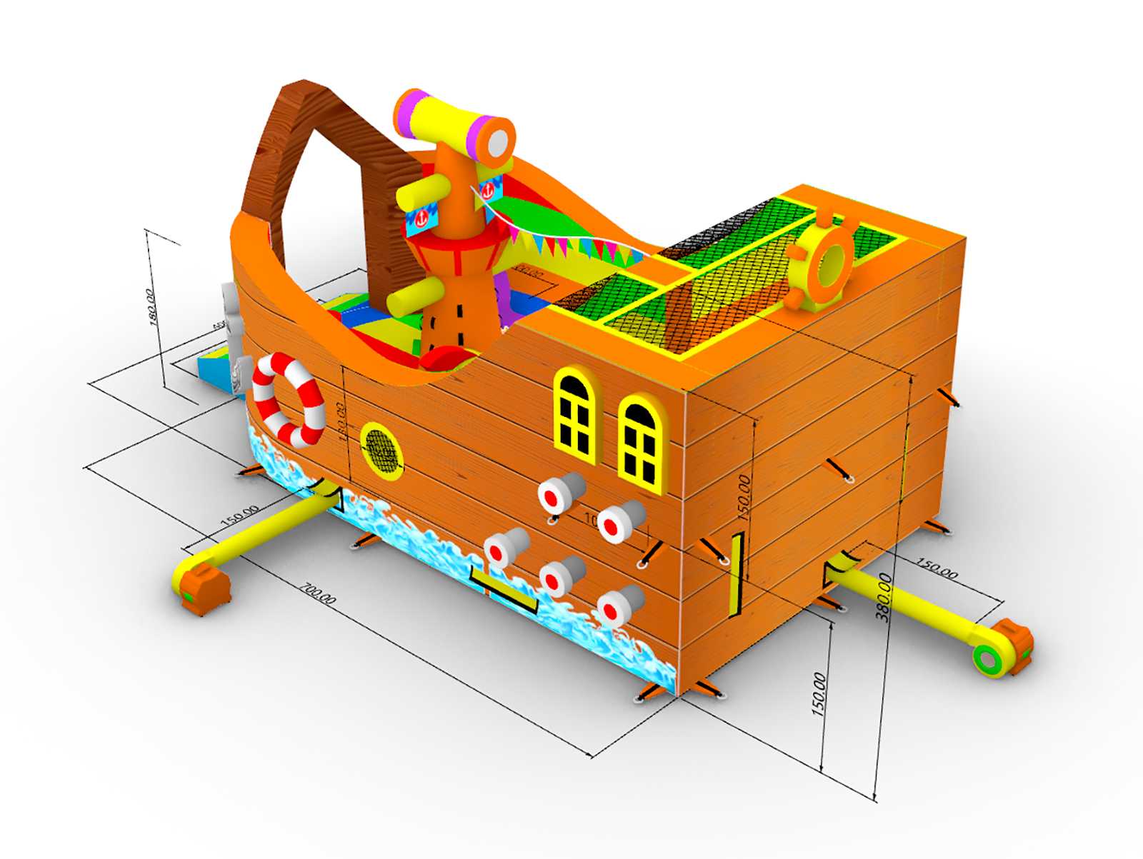 «Веселый кораблик» — это настоящий пиратский корабль, воплощённый в ярком и безопасном надувном формате! Он рассчитан на коммерческое использование и станет звездой любого детского мероприятия, парка или развлекательного центра. Его размеры 7x4x3.5 м позволяют разместить до 8 детей одновременно, при этом предусмотрено множество игровых элементов: горка со стартовой высотой горки 1 м, скалодром, столбики и надувные фигуры морских обитателей. Это не просто батут — это целый пиратский квест, где дети могут бегать, прыгать, ползать и скатываться с горки.
