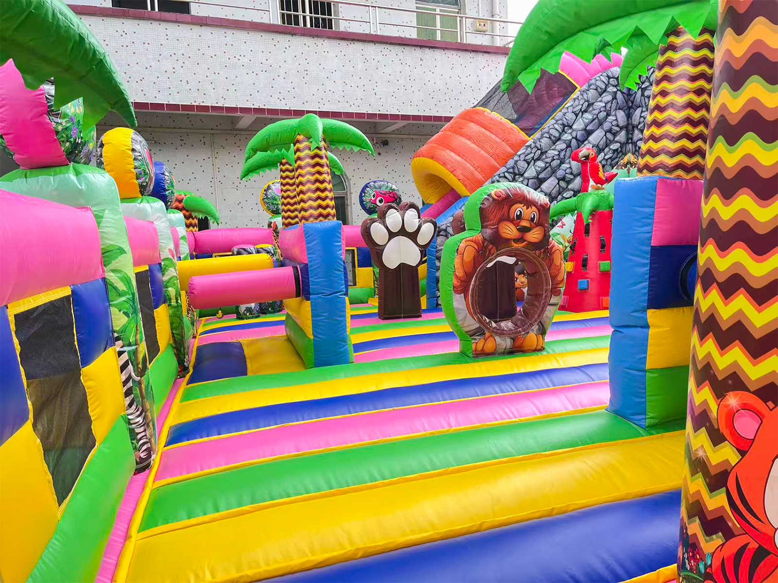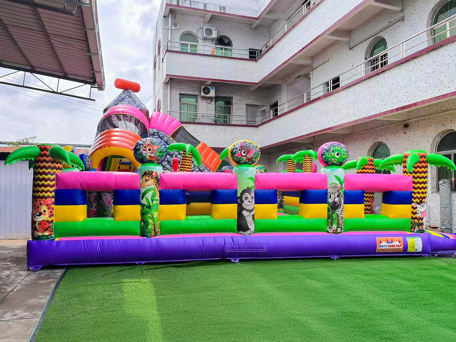 «В гостях у зебры» 8x8x6 — это не просто надувной батут, а целый приключенческий остров для детей. Яркие изображения животных, декоративные пальмы и весёлые арки превращают игру в настоящую экспедицию по джунглям. Горка со стартовой высотой 2,5 м и встроенный скалодром обеспечат активное и безопасное веселье для малышей и подростков. Такая зона всегда привлекает внимание родителей и детей, поэтому батут подходит для установки в парках, скверах, на стадионах и спортивных площадках, во дворах загородных лагерей, а также внутри крытых манежей, спортзалов и выставочных павильонов.