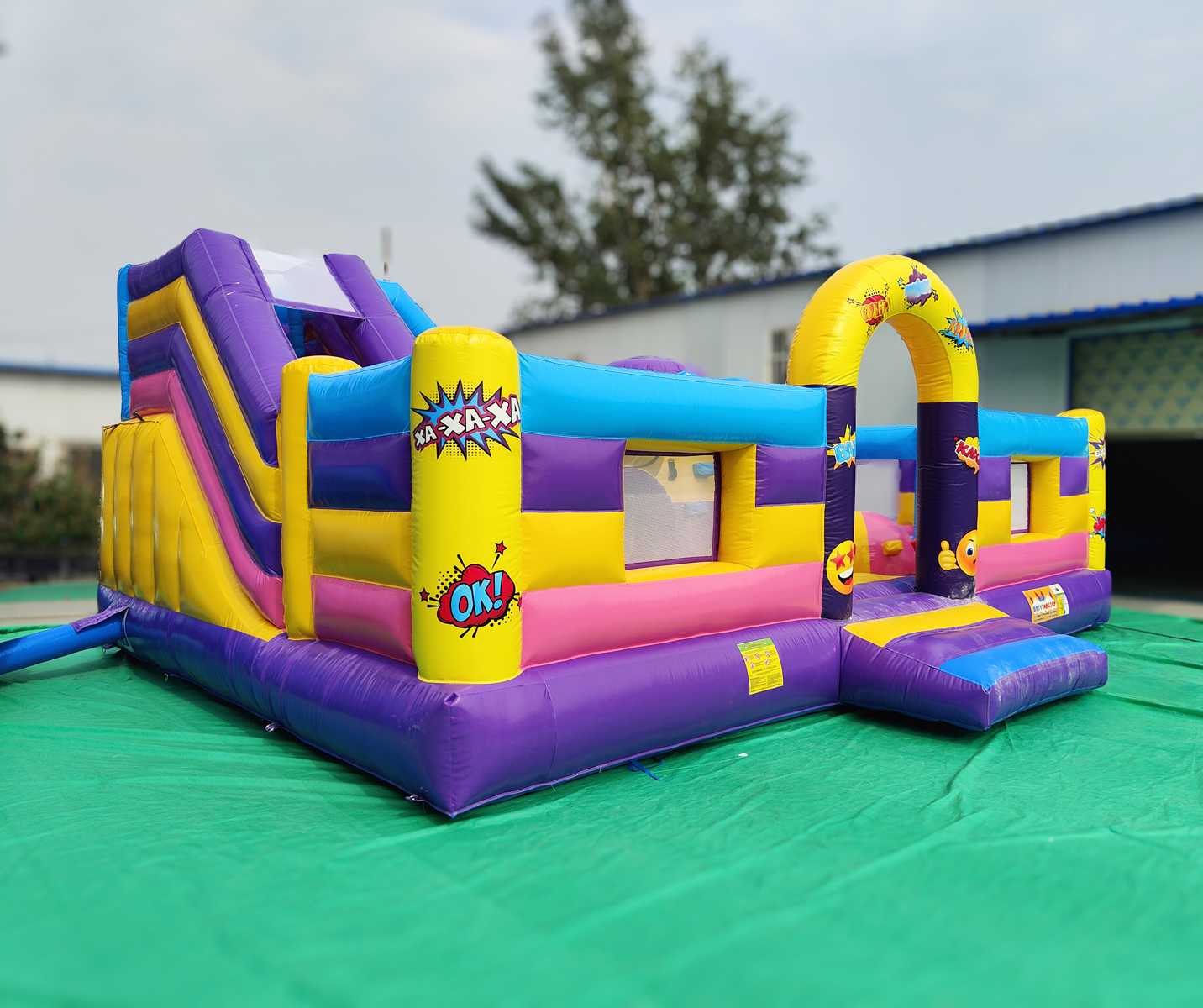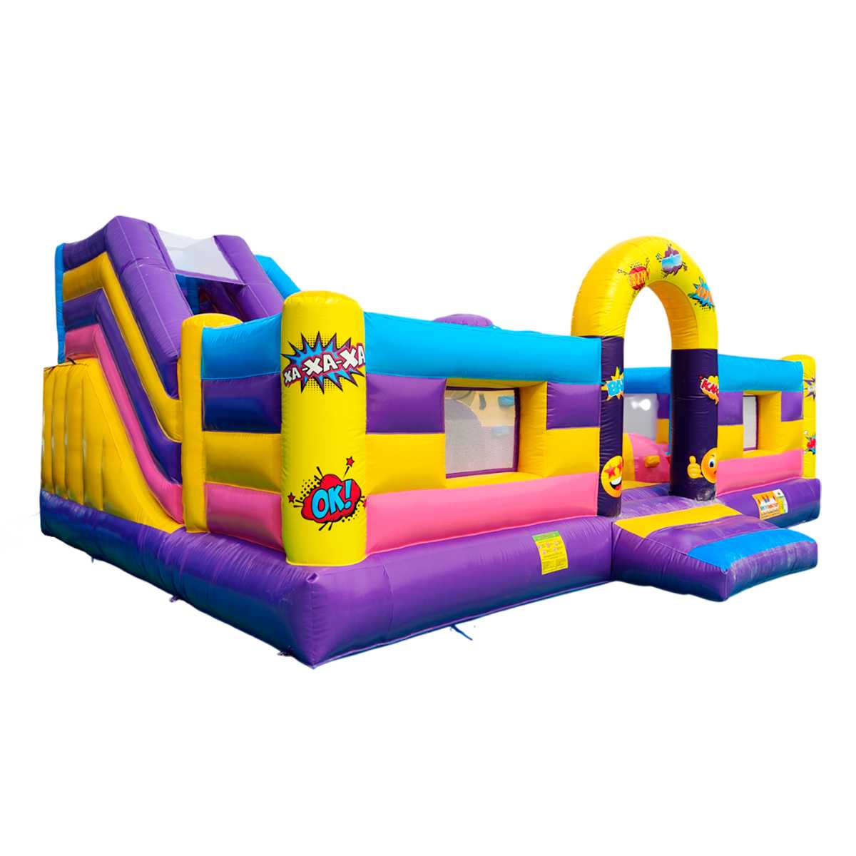 Надувной батут «Комиксы» — это не просто игрушка, а яркий, живой и масштабный мир фантазий, где каждый ребёнок может почувствовать себя настоящим супергероем! Оформленный в стиле популярных комиксов с сочными цветами, молниями, взрывами и фразами типа "BOOM!", "WOW!" он мгновенно захватывает внимание и превращает игровую зону в настоящую сцену приключений.