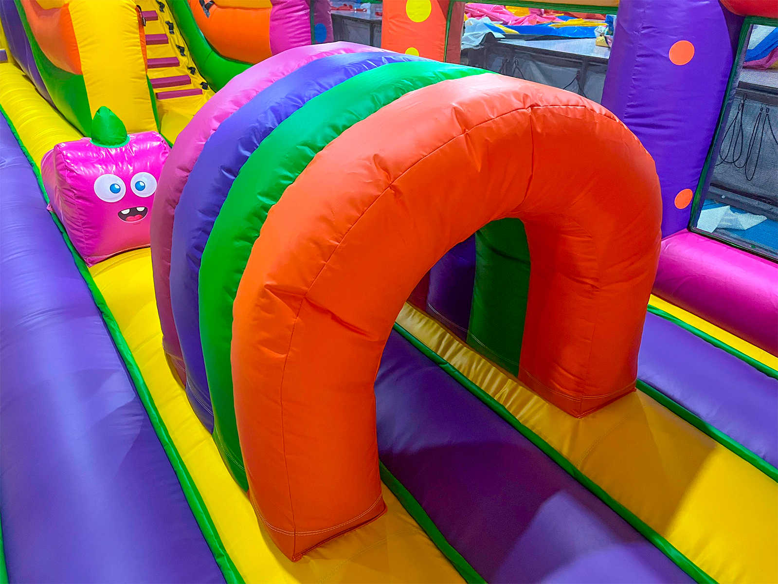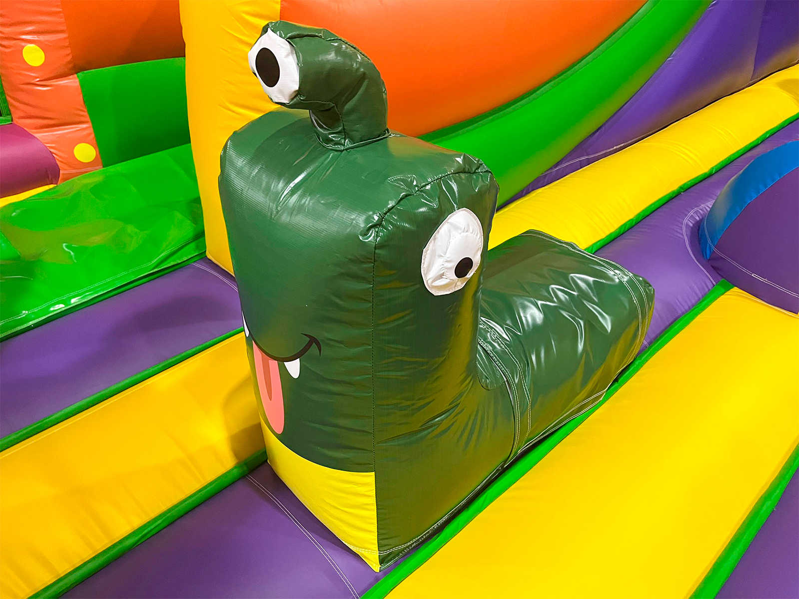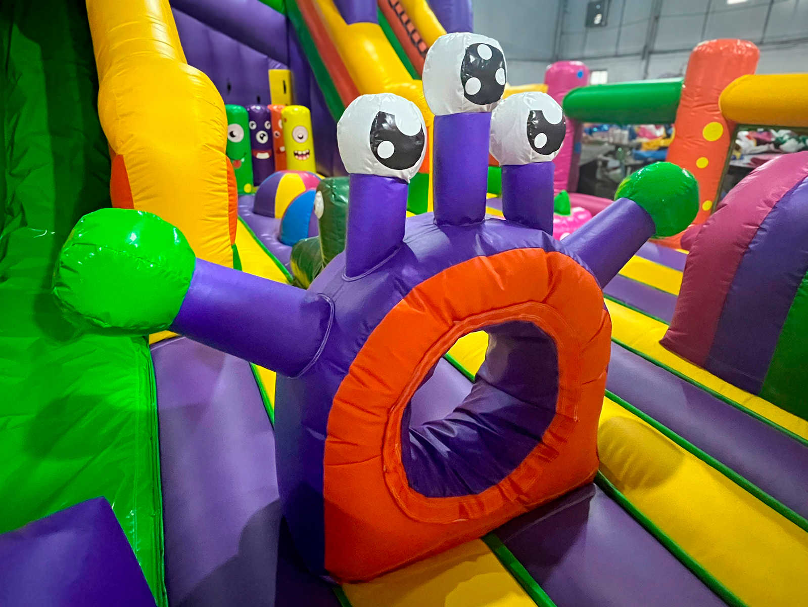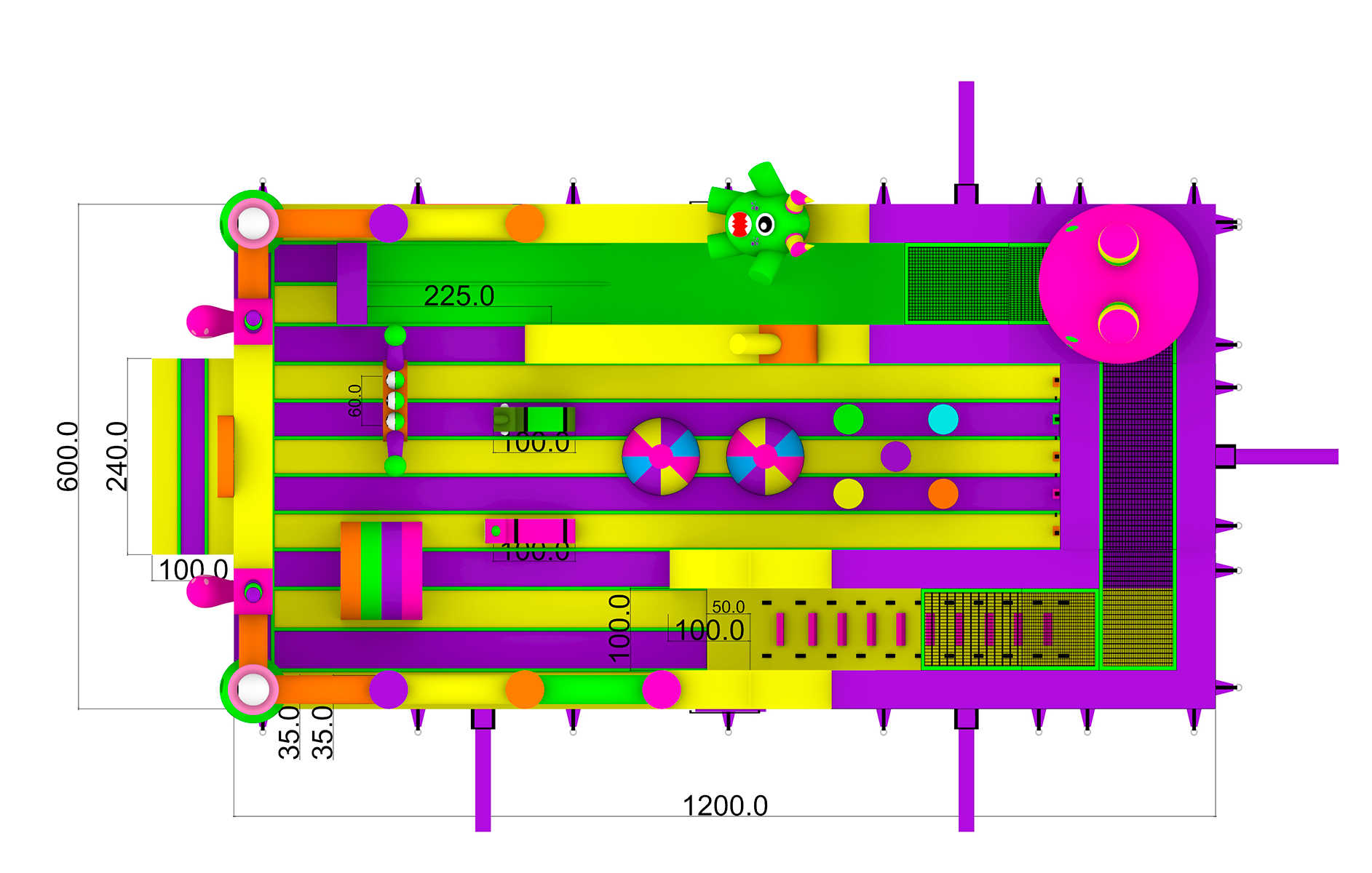Эта модель идеально подходит для использования на массовых мероприятиях, в парках, детских лагерях, на фестивалях и в торговых центрах. Благодаря прочному армированному ПВХ, усиленным швам и профессиональному оборудованию, батут выдерживает нагрузку до 960 кг и рассчитан на единовременное пребывание до 21 ребёнка.