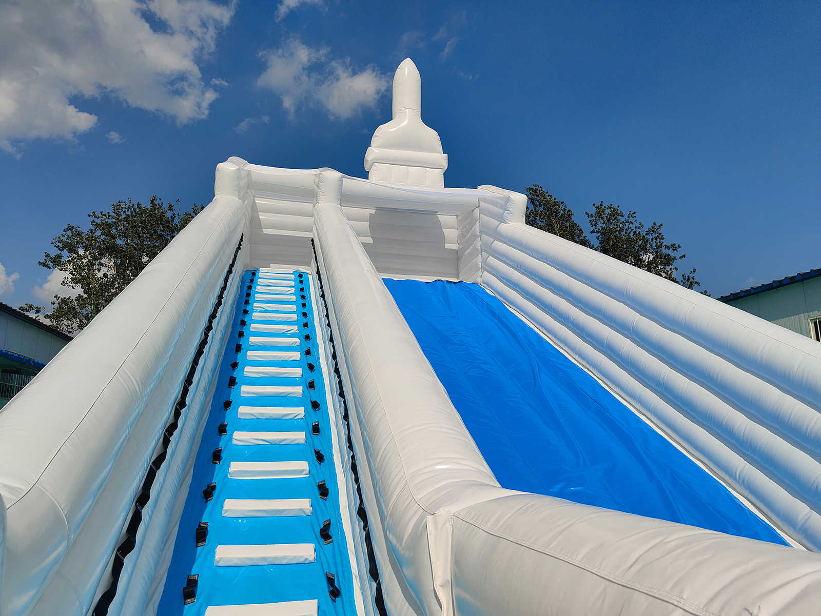 Перед началом нового сезона проводится проверка швов, клапанов и насосного оборудования. Благодаря гладкому ПВХ материалу, батут легко моется — он всегда выглядит, как новый, даже после сотен часов активной работы.