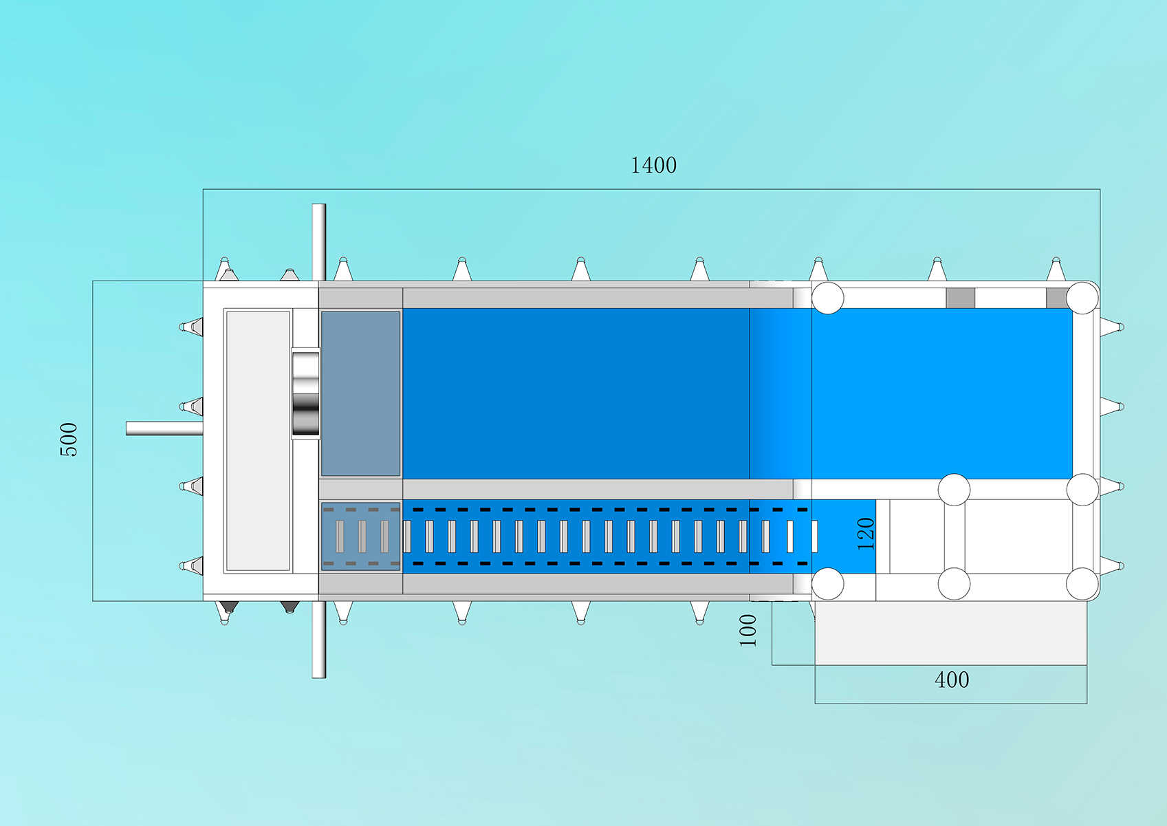 При длине 14 метров, ширине 5 метров и высоте 9 метров этот аттракцион поражает масштабом и в то же время остаётся простым в обслуживании. Его гладкая поверхность легко очищается — ведь не зря он носит имя «Чистюля»!
