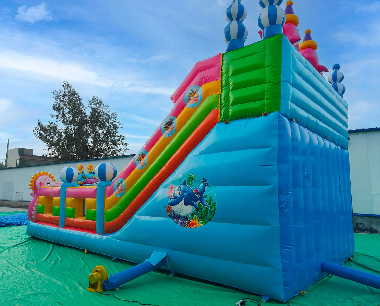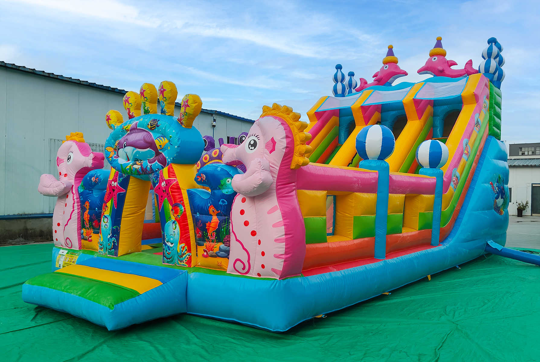 Надувные батуты для бизнеса — это один из самых востребованных форматов развлечений, который неизменно привлекает детей и обеспечивает предпринимателям стабильный поток клиентов. Батут «В гостях у дельфинов 3» размером 10x5x5 м — это масштабный аттракцион, созданный специально для коммерческого использования. Его уникальный дизайн с персонажами подводного мира, яркими арками, красочными фигурами морских животных и динамичными игровыми элементами делает его центром притяжения в любой локации.