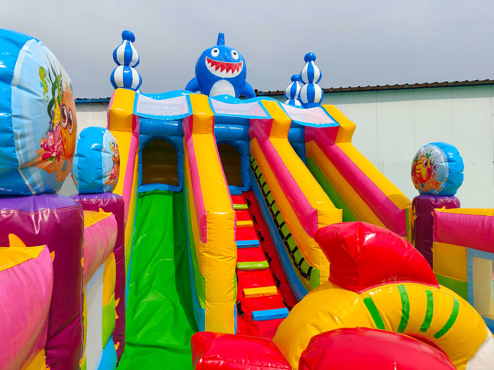 Коммерческий надувной батут с горкой «В гостях у моря 2» — это яркий, динамичный и безопасный аттракцион, который станет центром притяжения детей и родителей на любом мероприятии. Его размер 8x4x5 м обеспечивает просторную игровую зону, а морская тематика создаёт атмосферу весёлого подводного приключения.