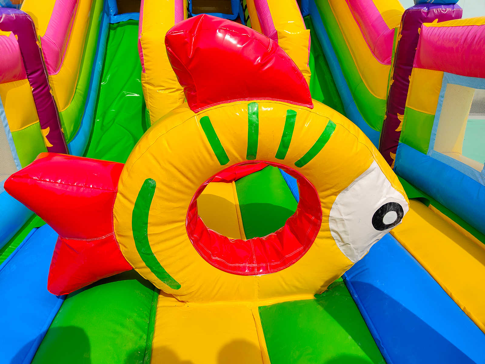 На батуте дети встречаются с забавными морскими обитателями: акулами, черепахами, рыбками и осьминогами.
