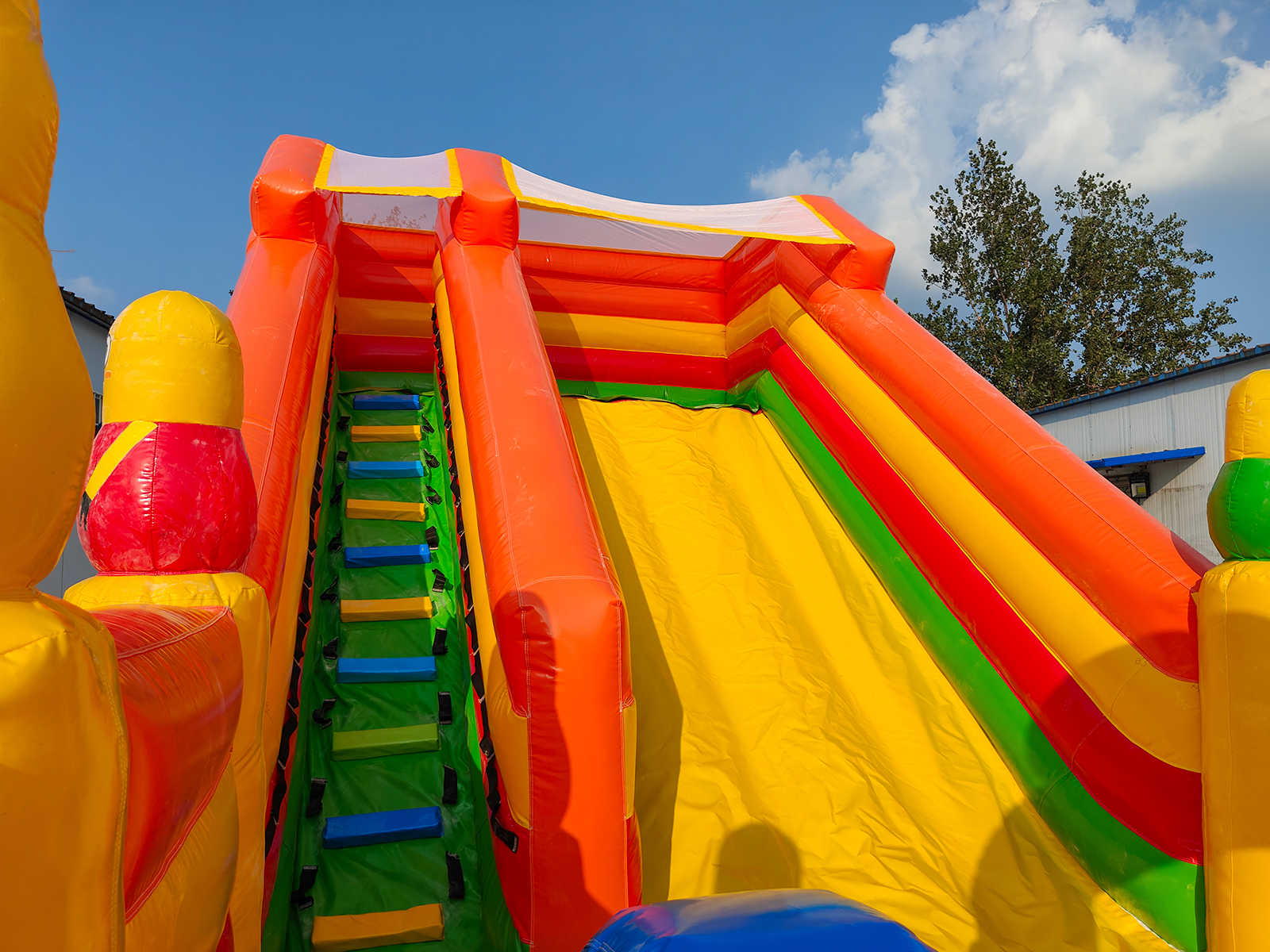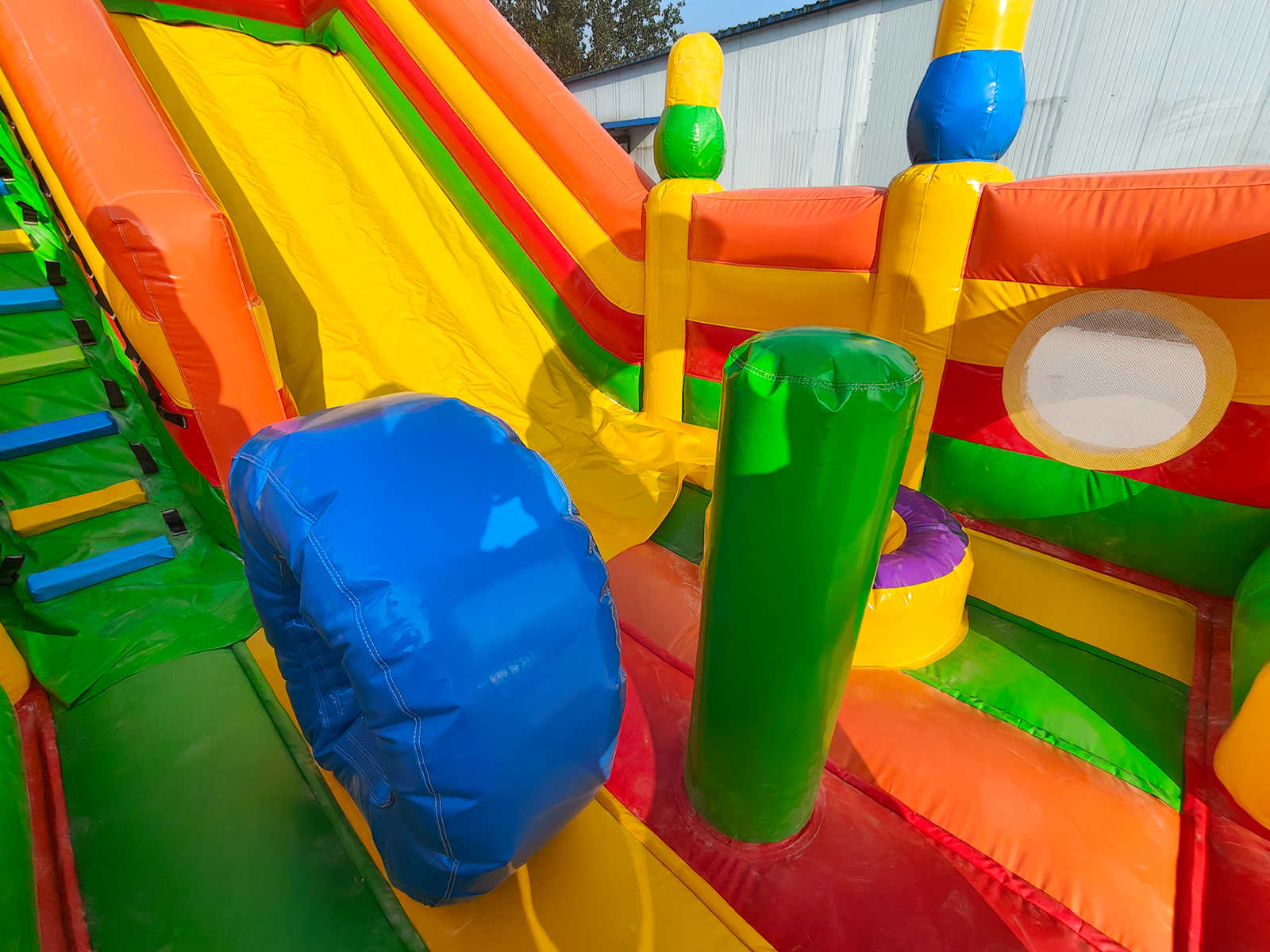 Особая жемчужина этого батута — высокая горка с удобным, мягким подъёмом. Она становится кульминацией любого маршрута: дети взбираются по разноцветным ступенькам, а затем стремительно скатываются вниз по солнечной жёлтой поверхности. Повторять это хочется снова и снова!