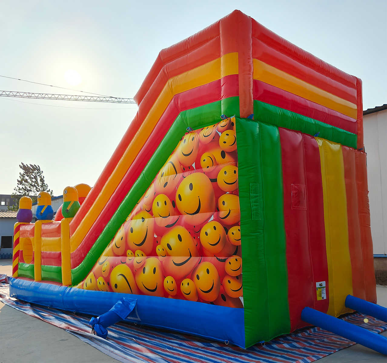 Как только ребёнок подходит к батуту «Смайлик», он будто шаг делает в удивительное яркое королевство. Здесь живут солнечные смайлики, мягкие цветные столбики, волшебные арки и разноцветные дорожки, ведущие к высокой горке. Каждая деталь наполнена жизнерадостной энергией, а яркая палитра словно приглашает: «Давай играть! Прыгай, исследуй, улыбайся!»