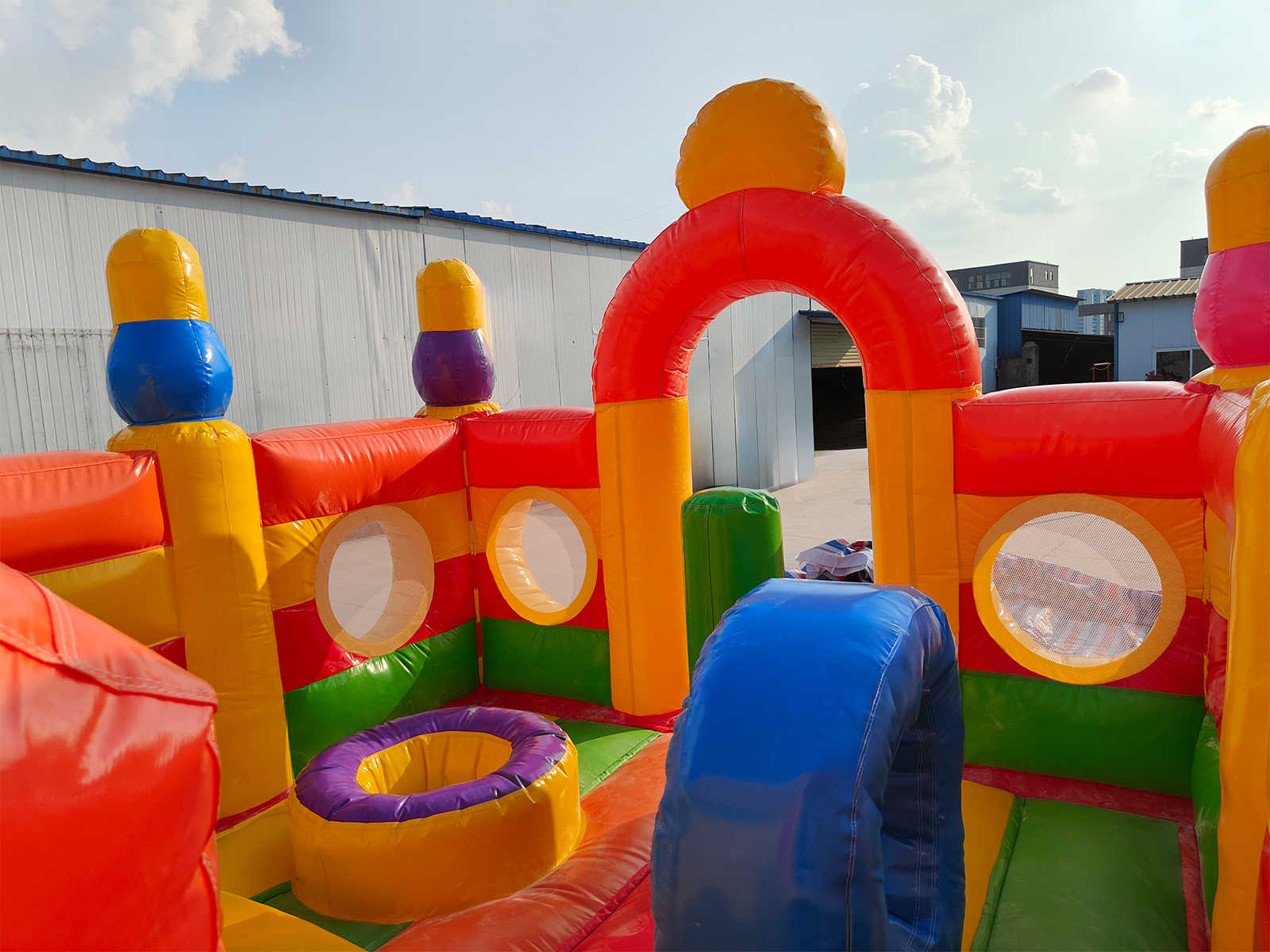 Внутри батута скрыт целый мини-мир, где дети могут свободно выбирать маршрут приключений. Просторная площадка для прыжков окружена круглыми лазами, игровыми фигурами и яркими препятствиями, которые делают движение динамичным и увлекательным.