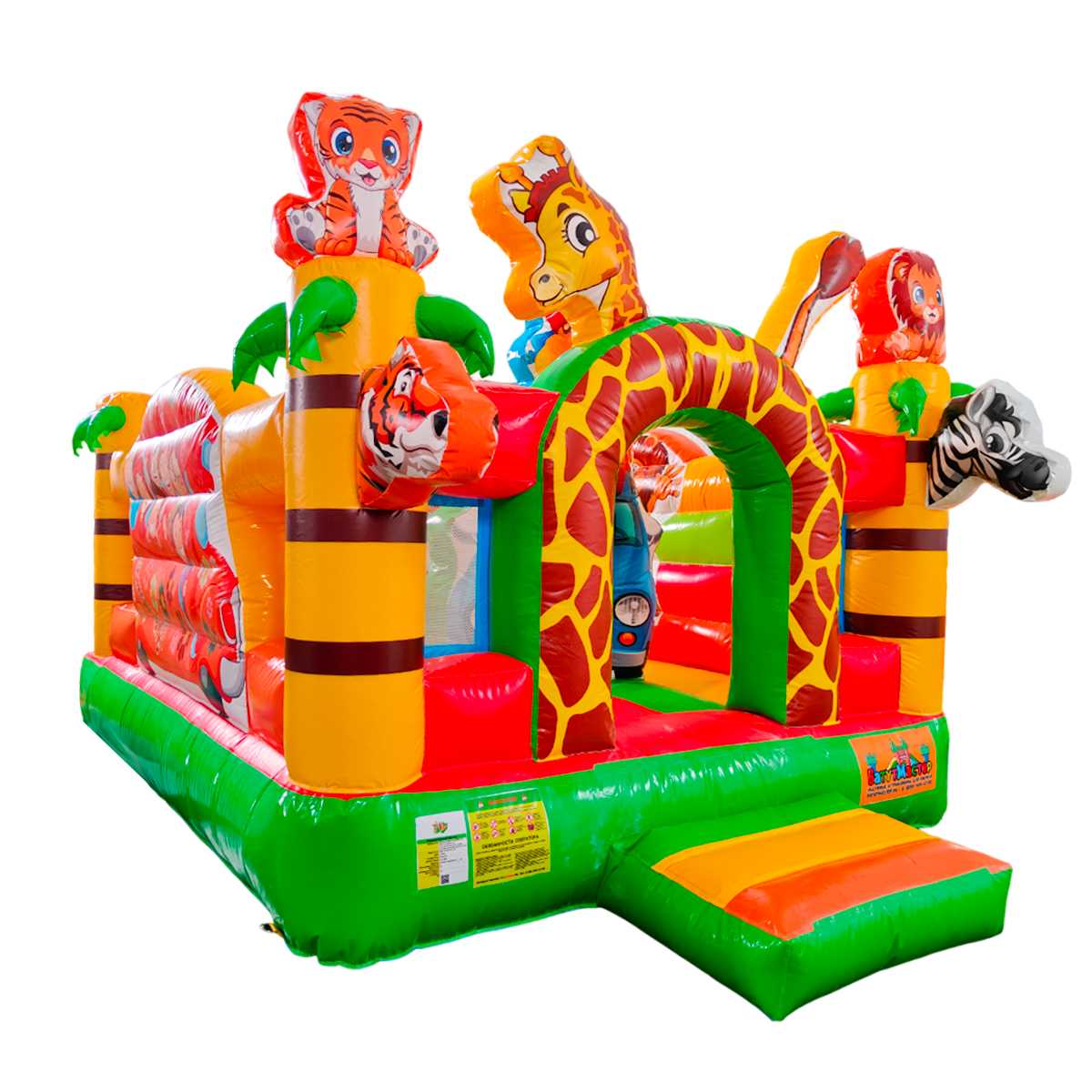 «Сафари-экскурсия 3» — это не просто надувной батут, а настоящий мини-парк развлечений, выполненный в тематике джунглей. Благодаря ярким расцветкам, забавным мордашкам животных и множеству игровых элементов внутри, он превращается в активную игровую зону, которая моментально притягивает детей и делает его центром внимания любого мероприятия.