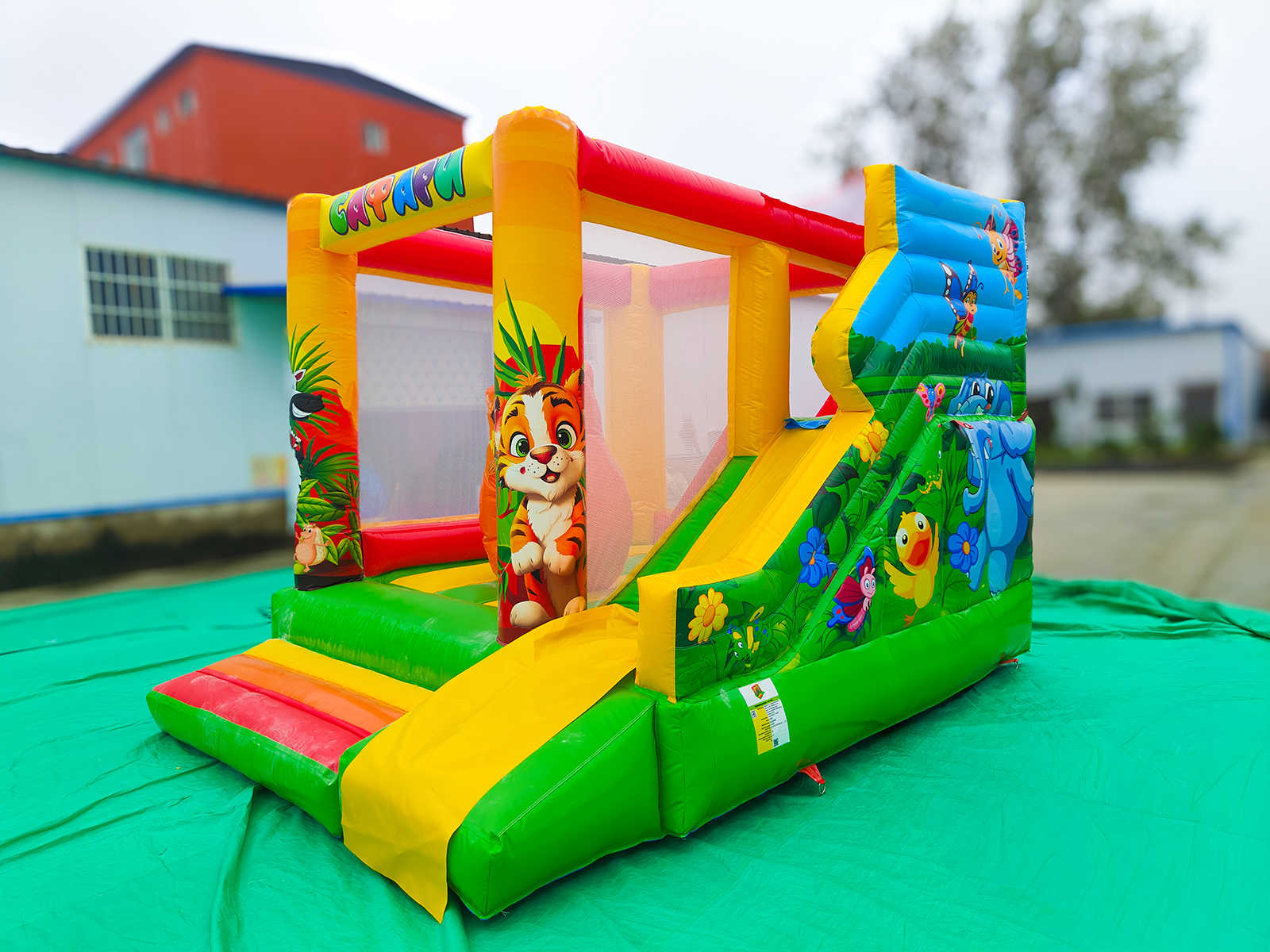 Декоративные фигуры животных не только украшают батут, но и создают дополнительные игровые сценарии, превращая простое развлечение в захватывающее приключение. Конструкция устойчива и надёжно фиксируется с помощью анкеров или балластов, что особенно важно при использовании на открытых площадках.
