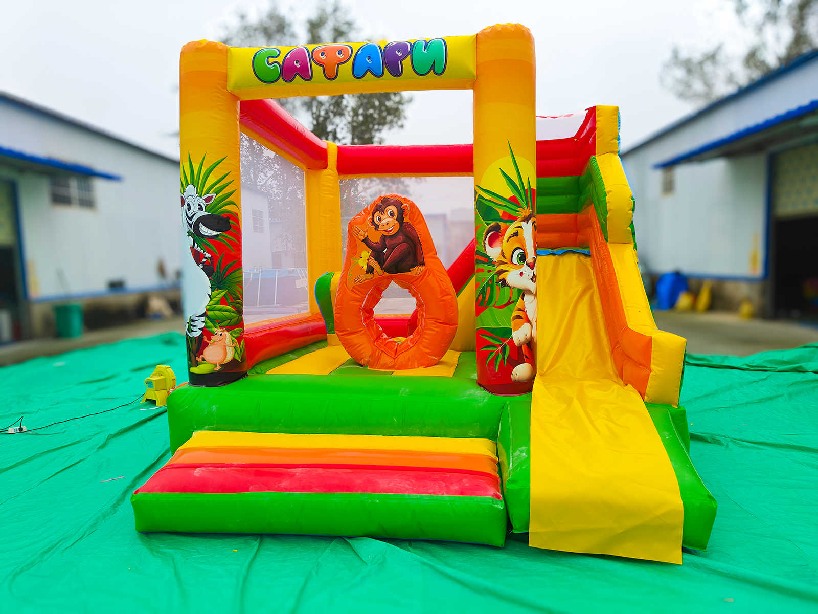 «Чудо-сафари мини» — это не просто батут, а целый мир ярких эмоций и приключений! Его оформление выполнено в африканском стиле: весёлая зебра, озорная обезьянка и яркие джунгли создают атмосферу веселья и праздника. Малыши мгновенно погружаются в игровое путешествие, где можно прыгать, бегать, кататься с горки и фантазировать о дикой природе.