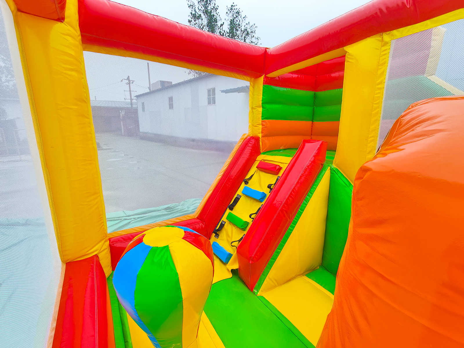 Размеры батута — 4x3.5x2.8 м, что делает его удобным для установки практически в любом месте. Внутри предусмотрена просторная зона для прыжков, а также горка со стартовой высотой от земли 1,5 метра, обеспечивающая безопасный и увлекательный спуск.