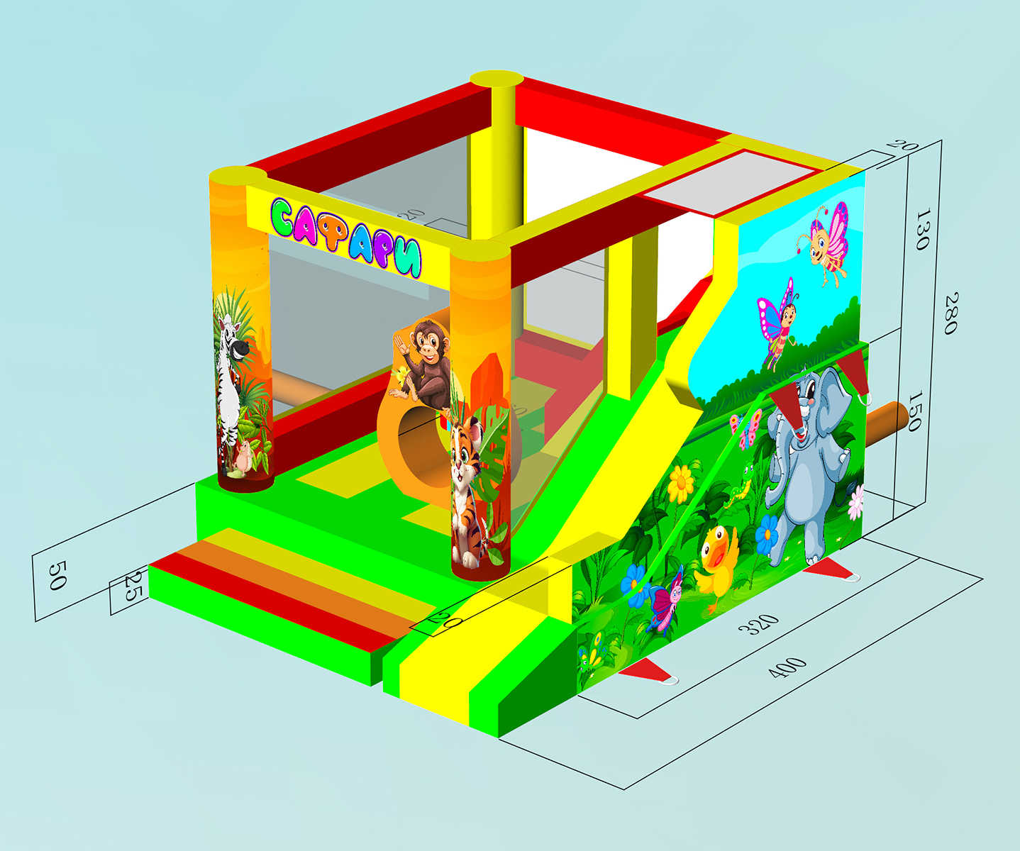 Батут «Чудо-сафари мини» — отличное вложение в развлекательный бизнес. Он подходит как для стационарных зон отдыха, так и для выездных мероприятий.