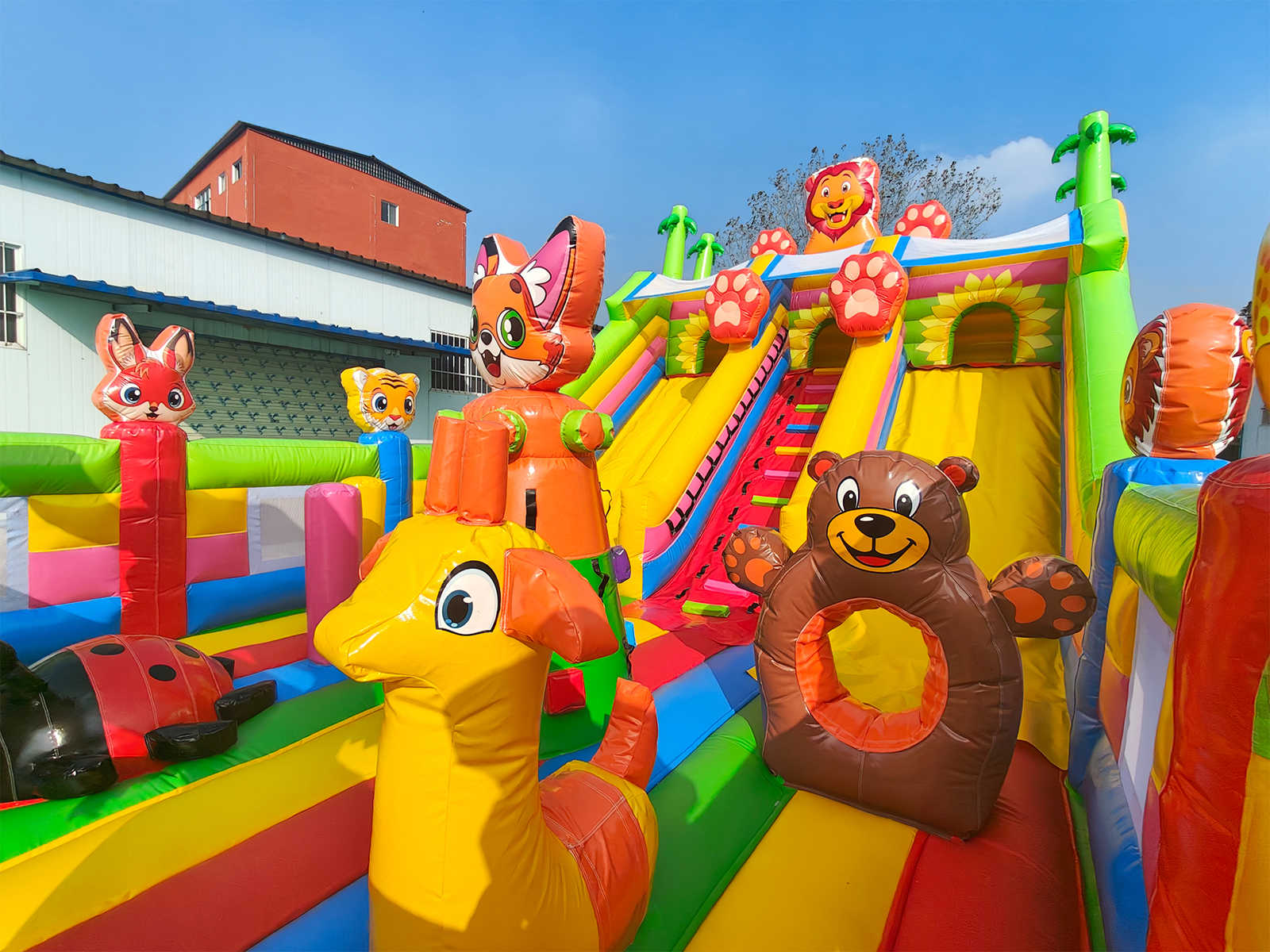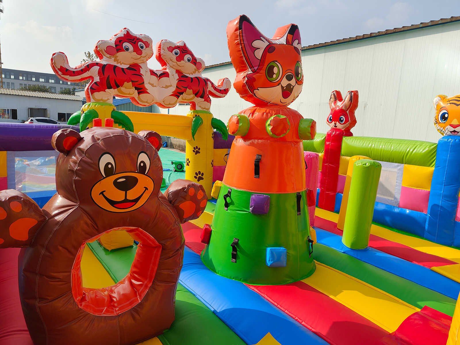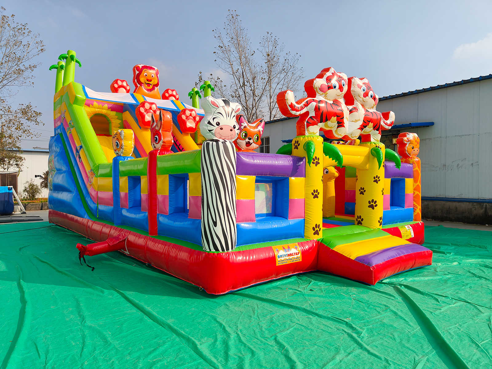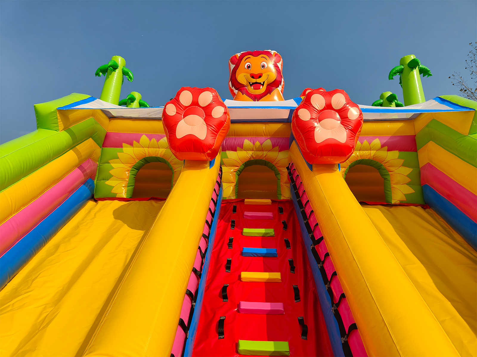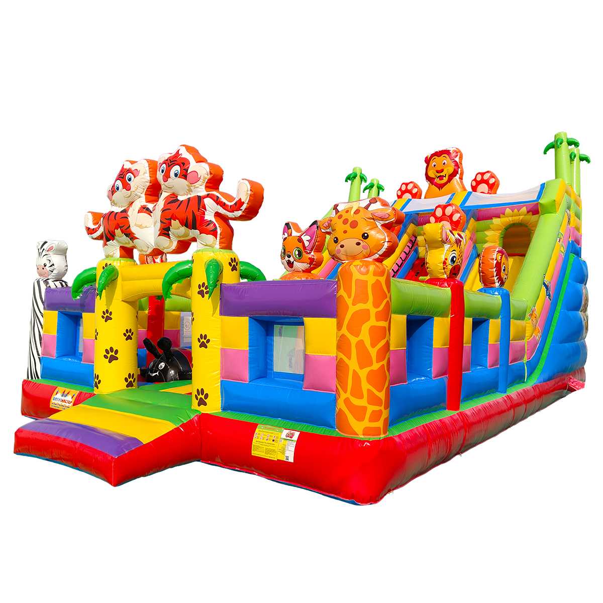 «Тигриная страна 6» — это не просто батут, а настоящий тематический парк в миниатюре. Его оформление вдохновлено африканскими джунглями и дикой природой: надувные фигуры животных, деревья, арки и мягкие препятствия создают атмосферу увлекательного приключения. Яркие цвета и запоминающийся дизайн делают этот батут центром внимания на любом мероприятии. Его размеры — 10x6x5.5 метров — позволяют вместить до 17 детей одновременно, не создавая скученности и очередей.